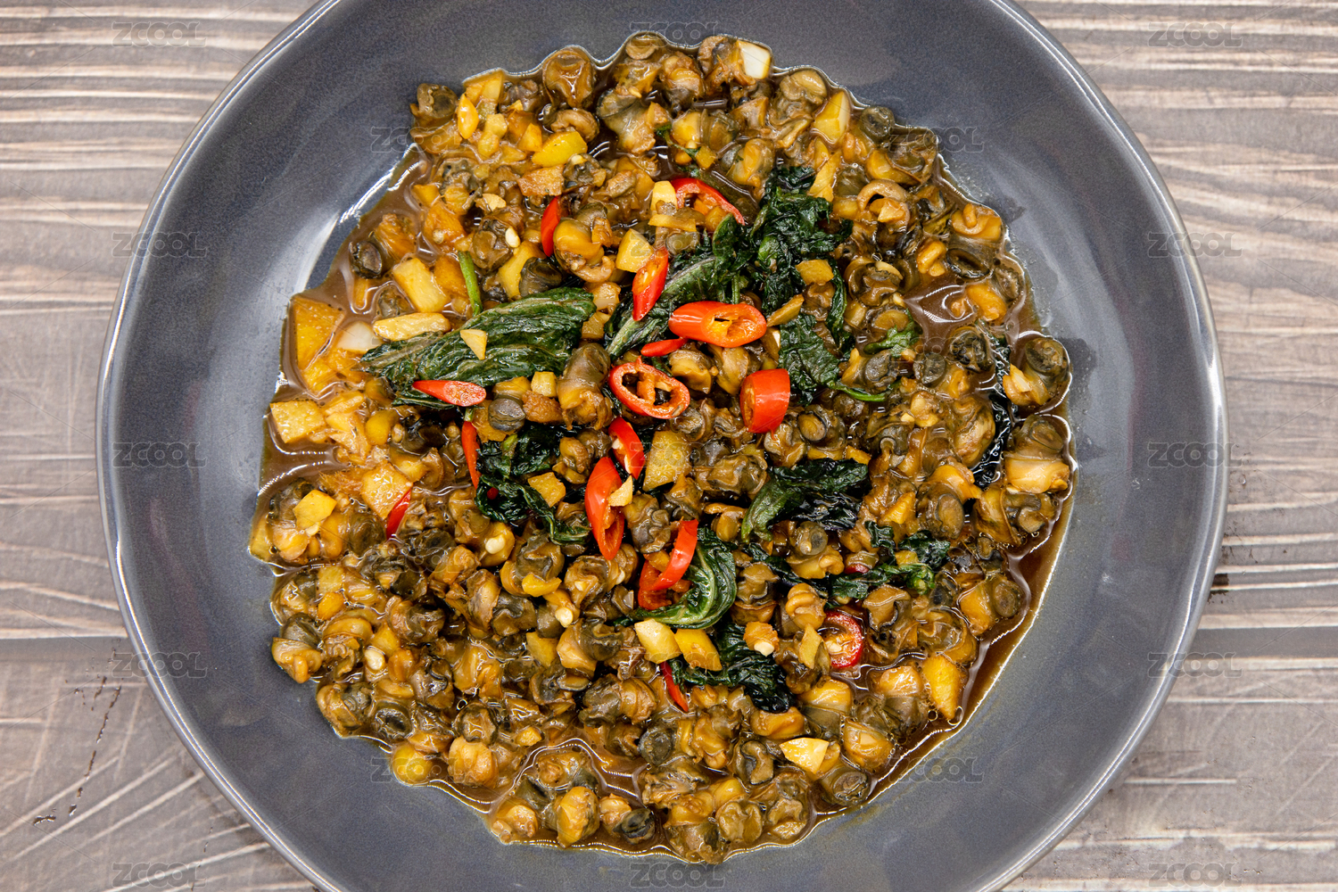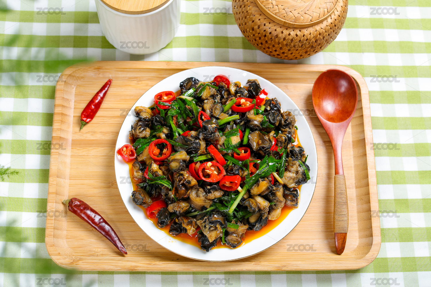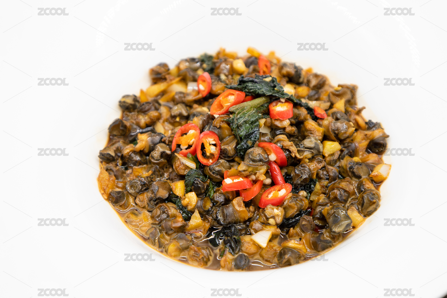 一碟香辣田螺肉美食攝影