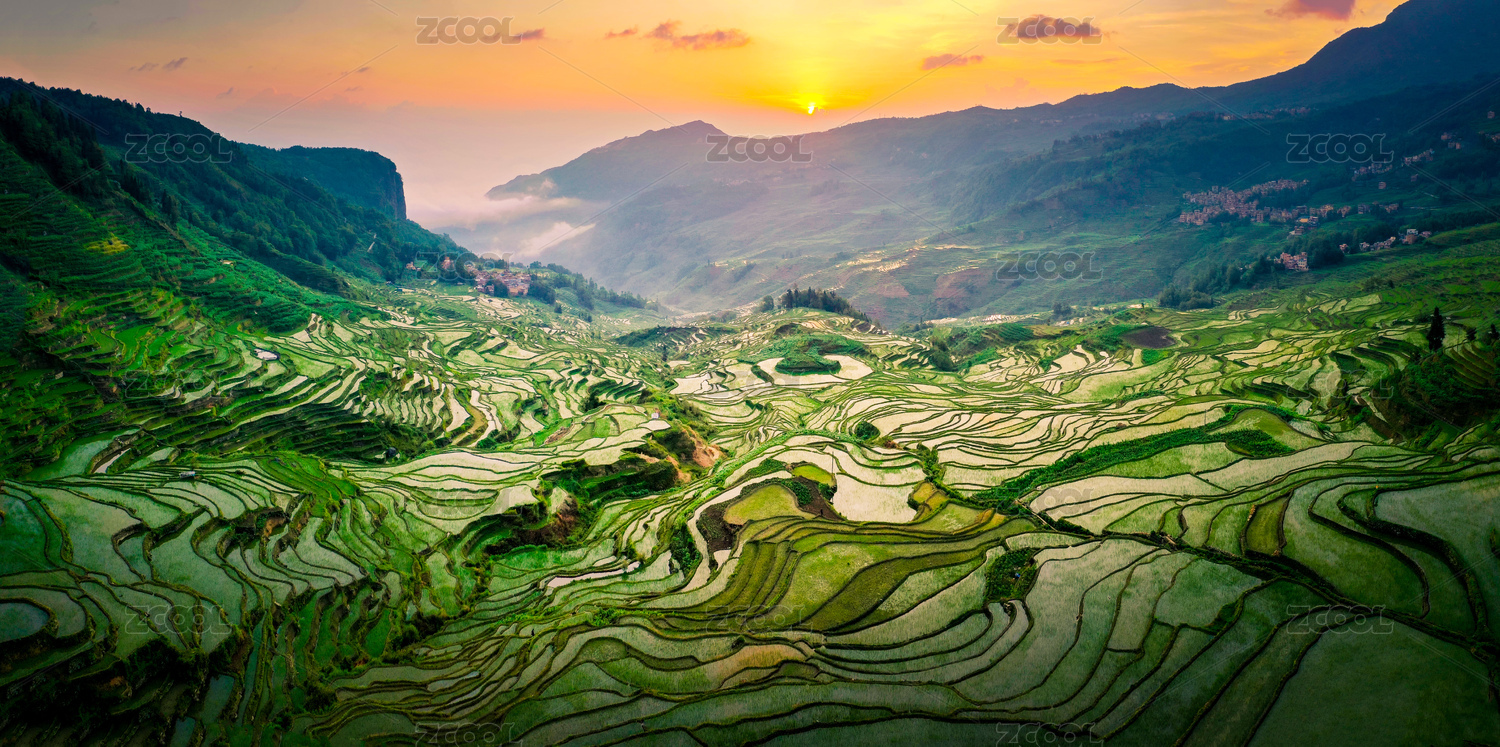 中國云南紅河州元陽梯田黎明自然風光航拍