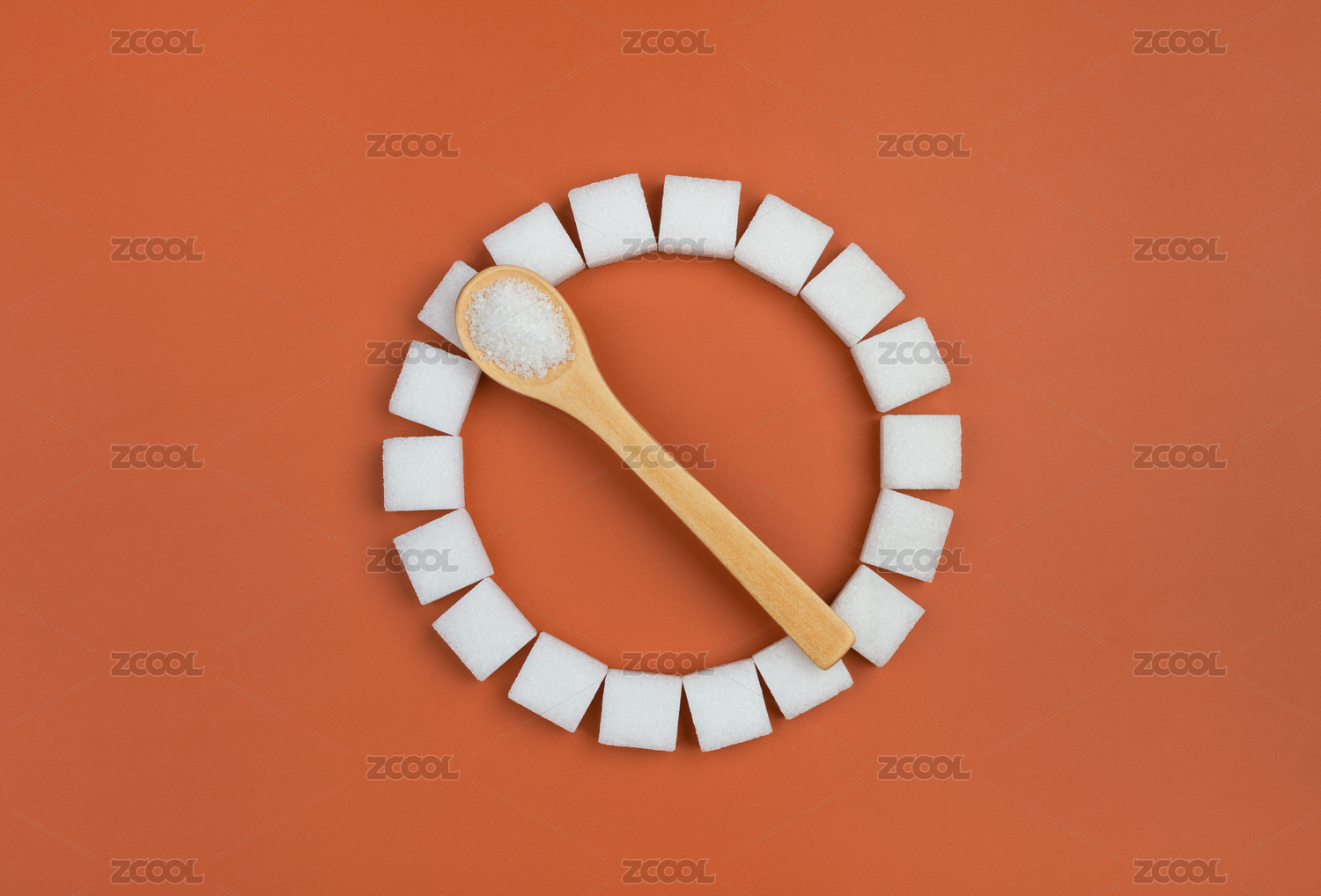 無糖無添加蔗糖木勺方糖組合成禁止符號