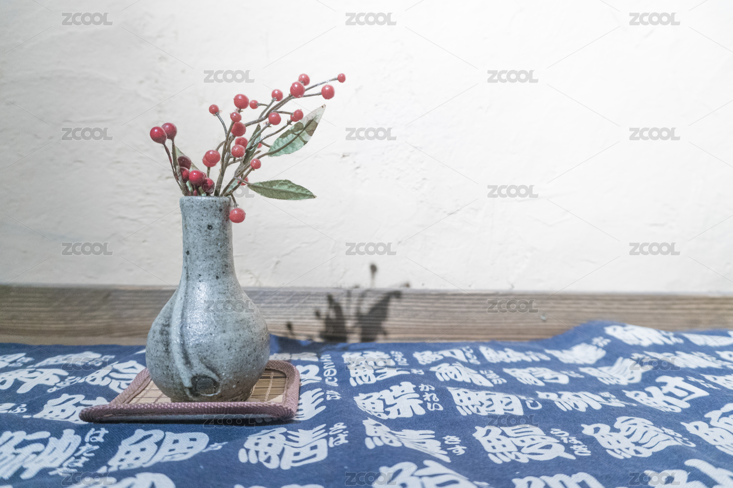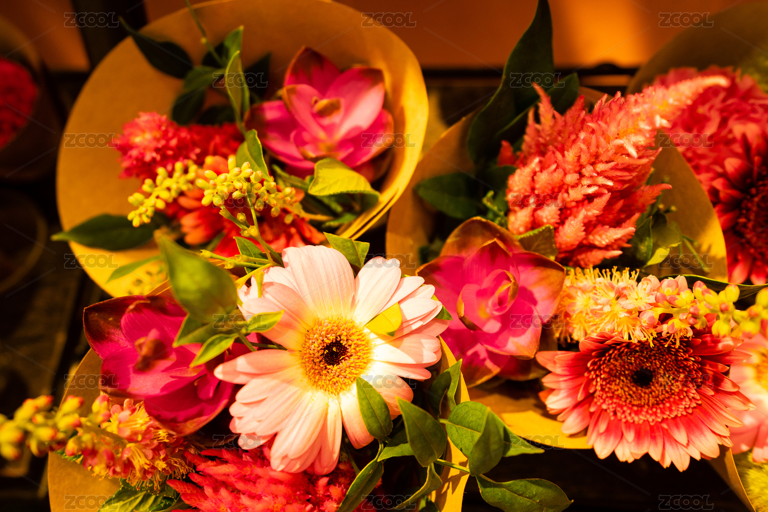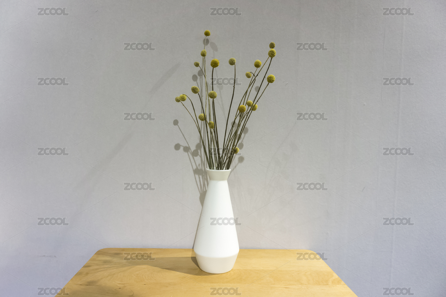 室內(nèi)角落里被暖色燈光照射的藝術(shù)插花