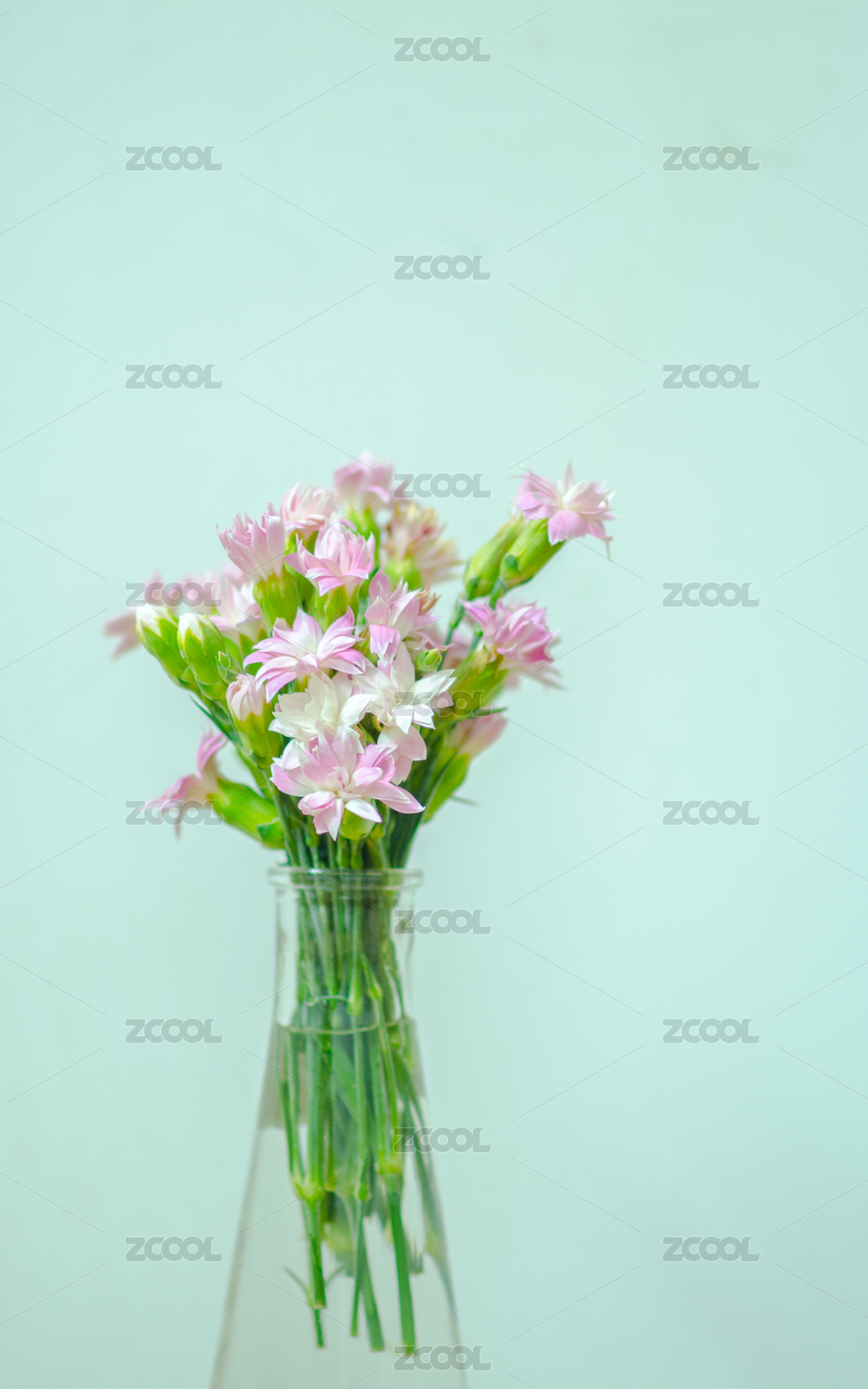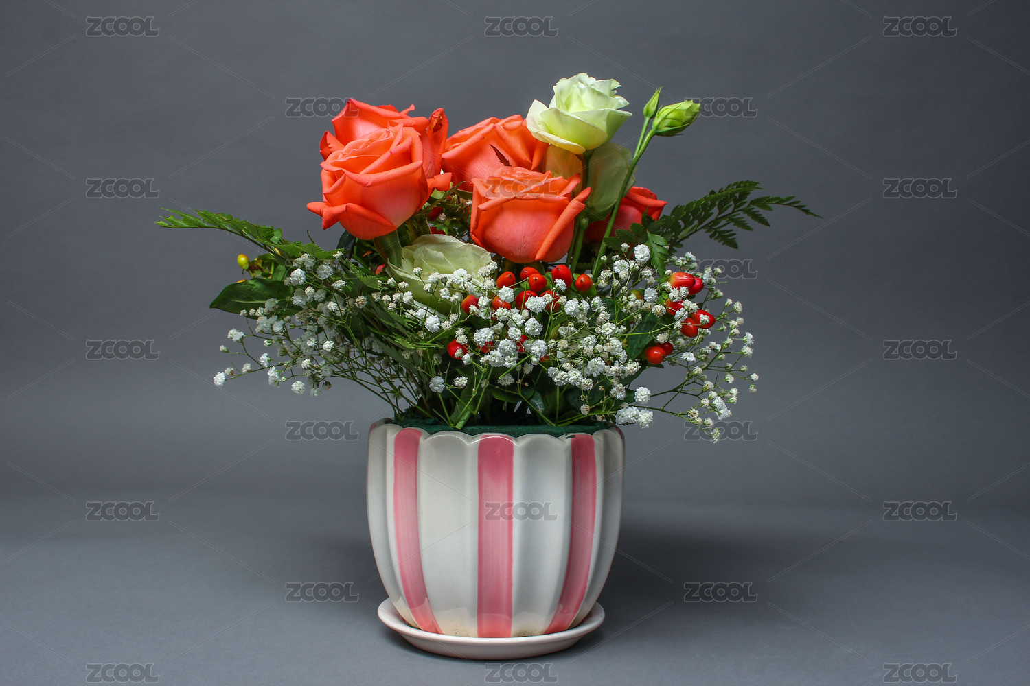 淺色背景深色花瓶上一束盛開(kāi)花朵的插花裝飾