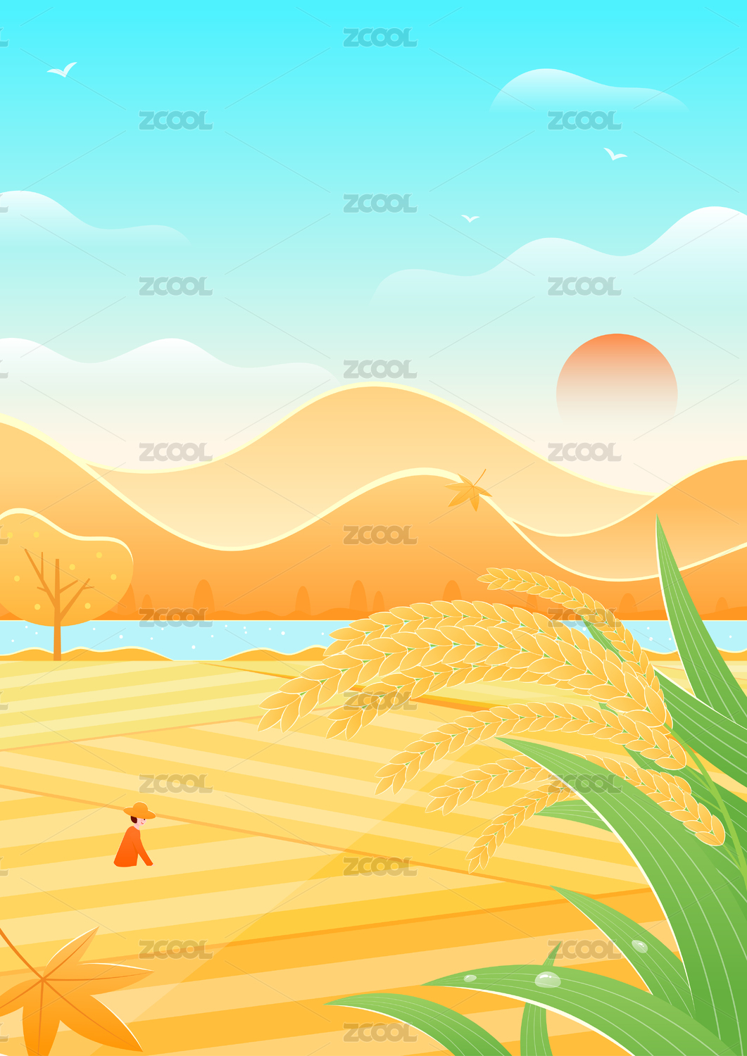 秋天立秋白露秋分農(nóng)民秋收風(fēng)景矢量插畫