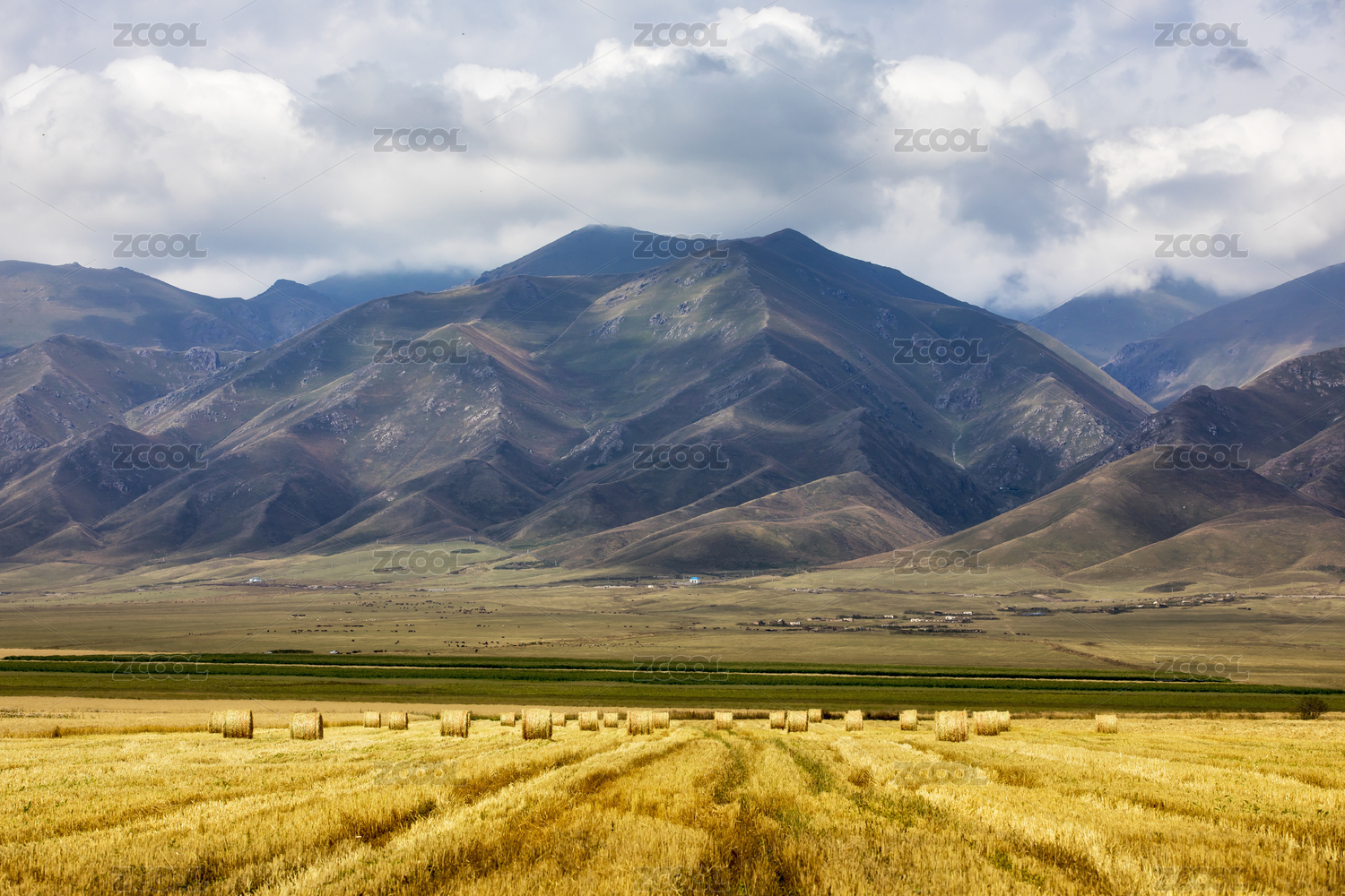 中國東北大興安嶺地區(qū)秋季收割機(jī)在農(nóng)場秋收
