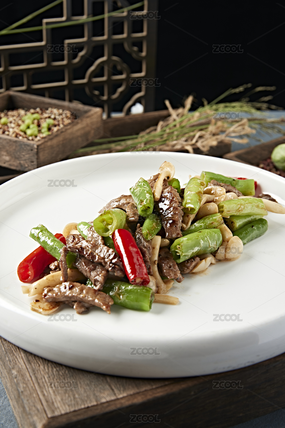 白色盤子里的杭椒牛柳