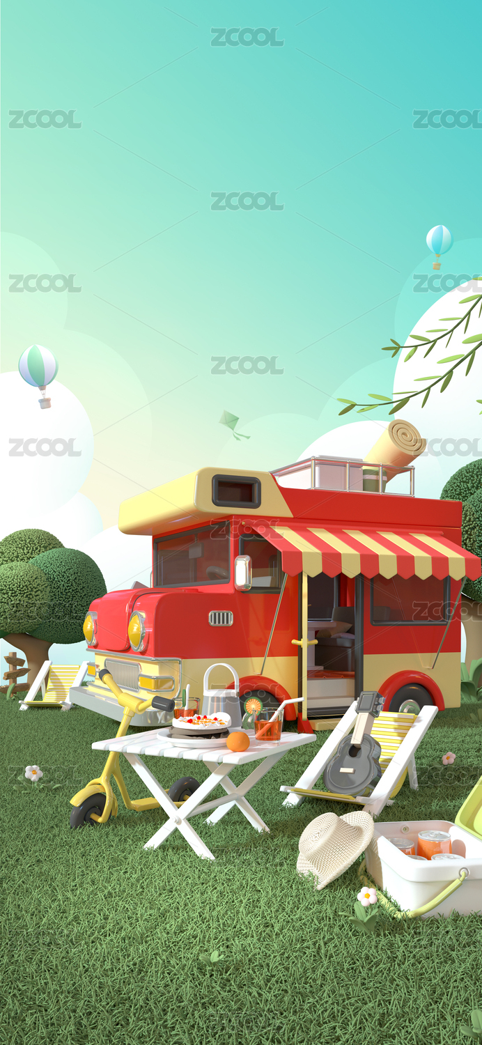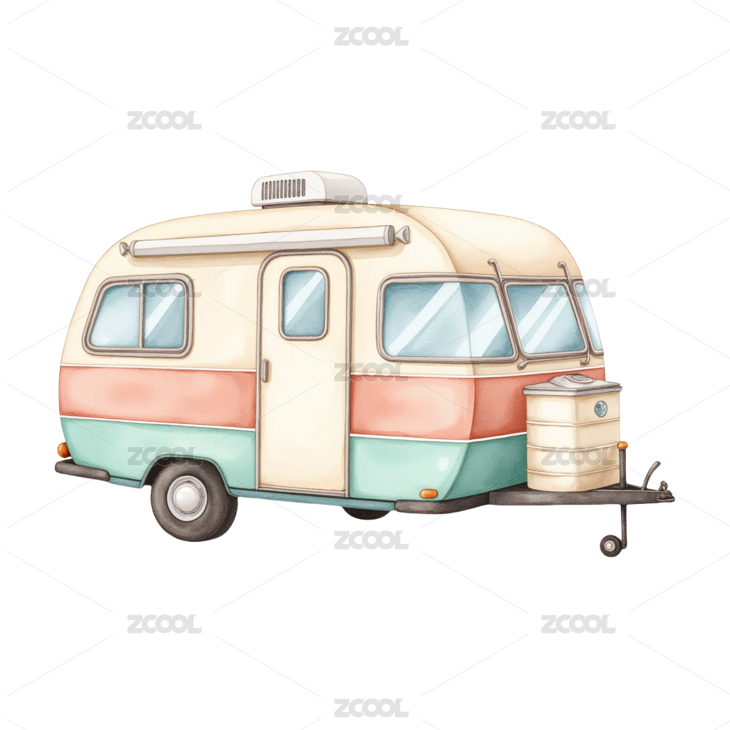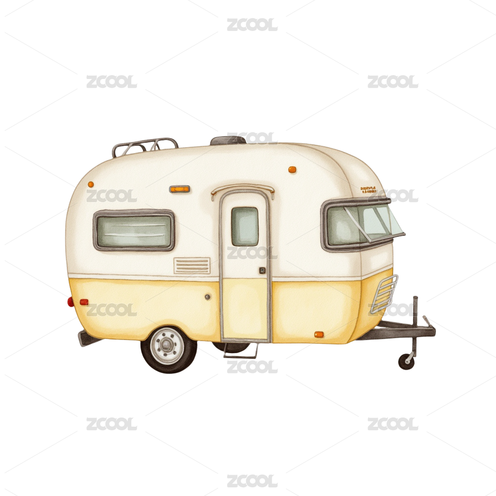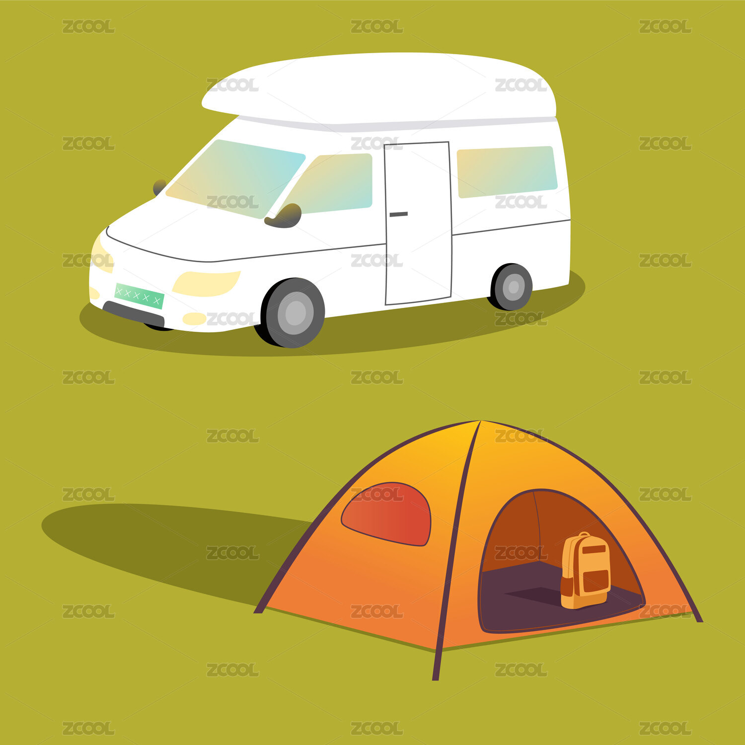 戶(hù)外房車(chē)帳篷自駕游戶(hù)外露營(yíng)插畫(huà)元素