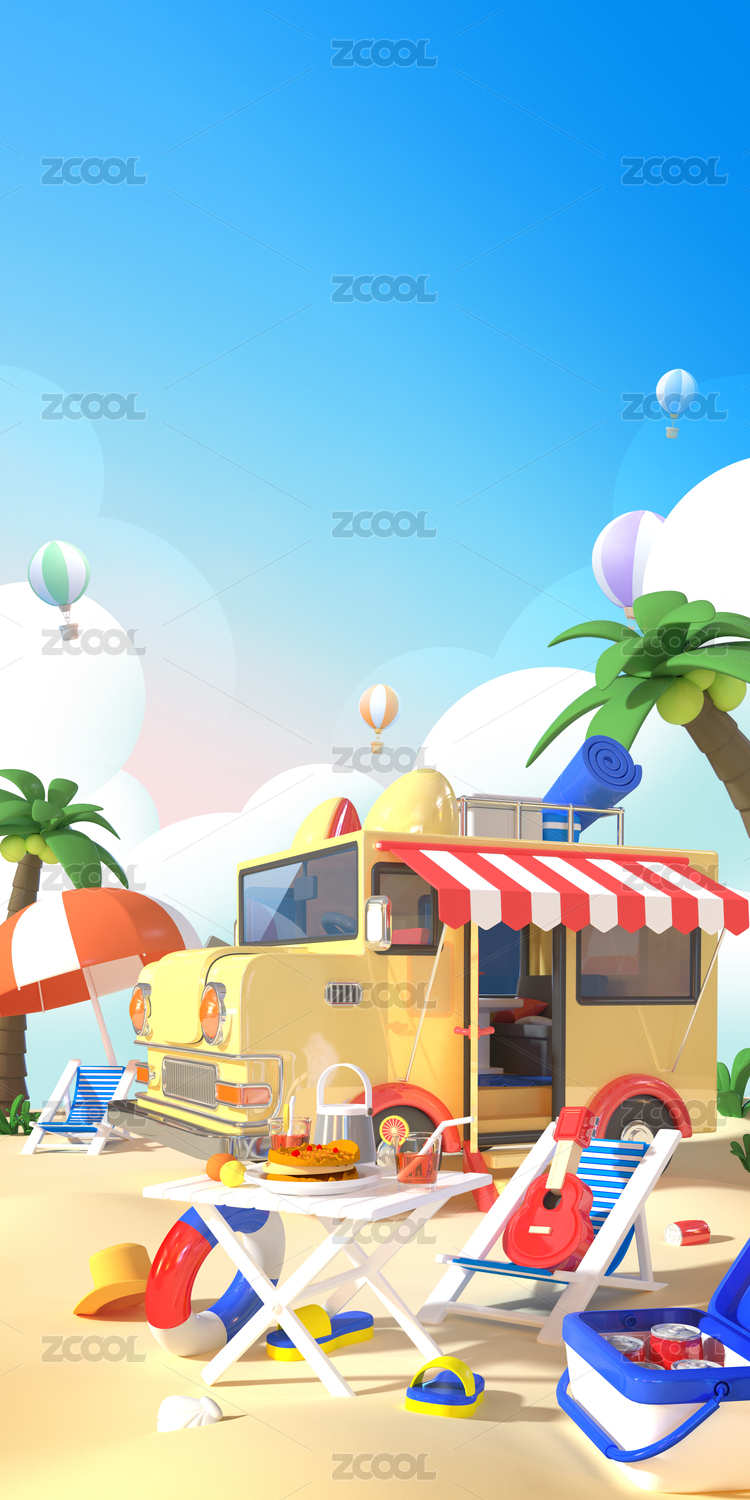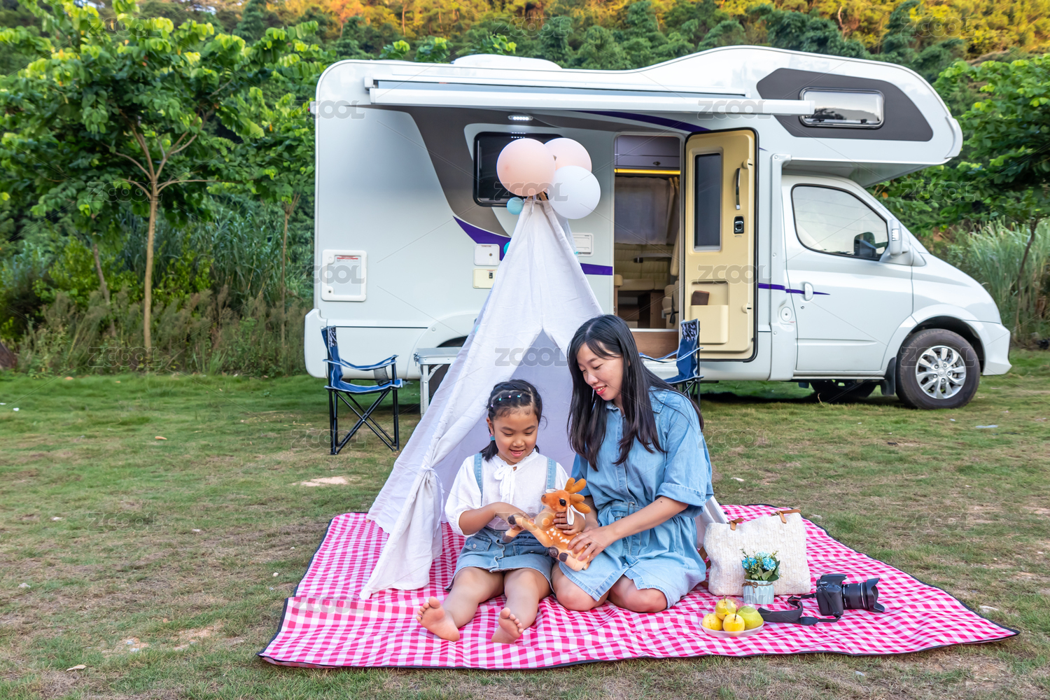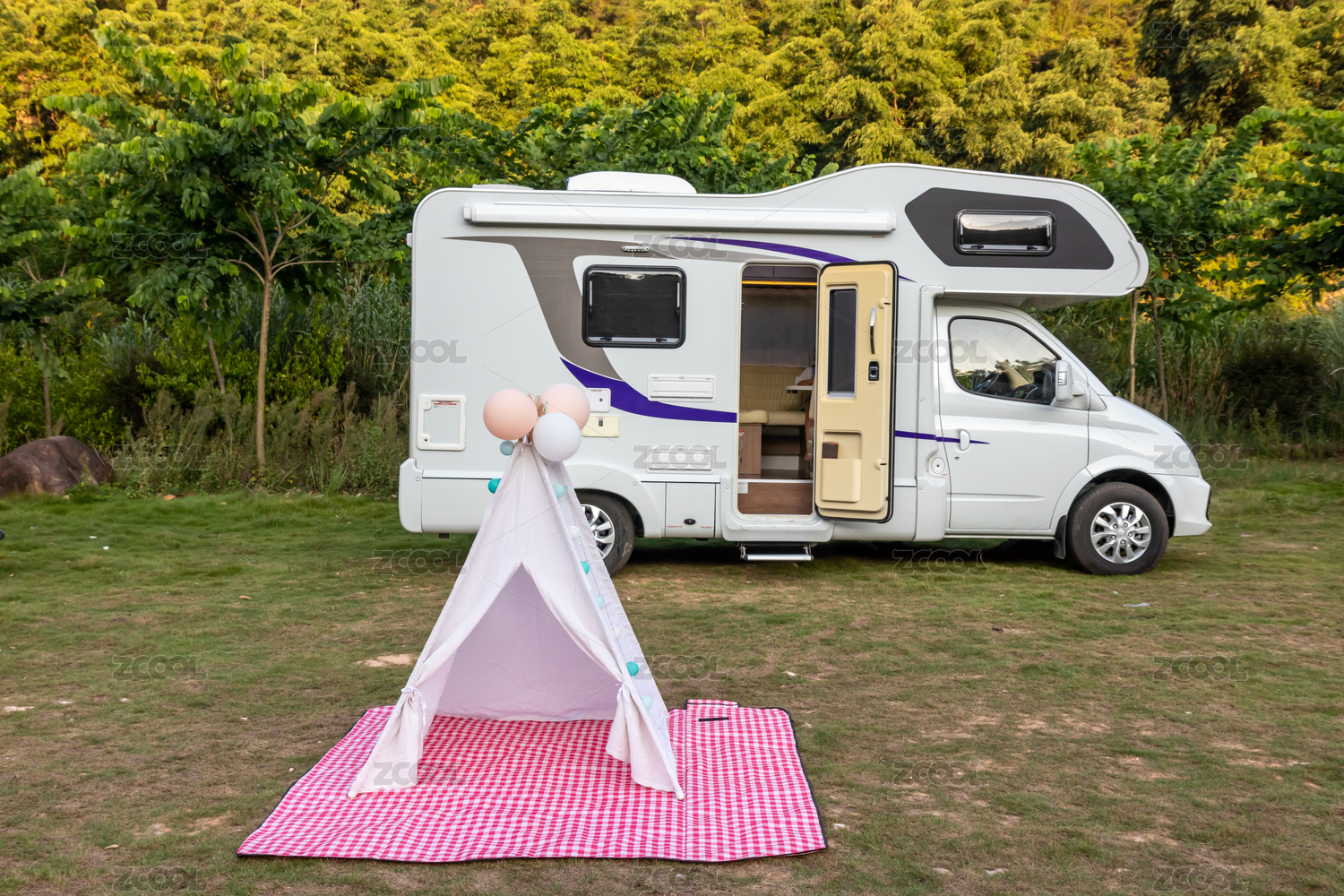 戶(hù)外房車(chē)帳篷自駕游戶(hù)外露營(yíng)插畫(huà)元素