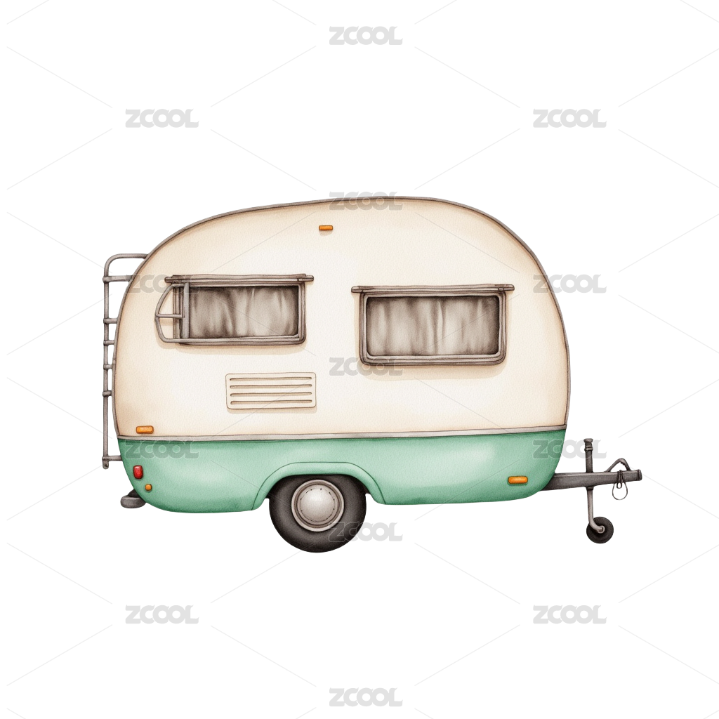 綠色卡通簡(jiǎn)筆畫(huà)房車(chē)