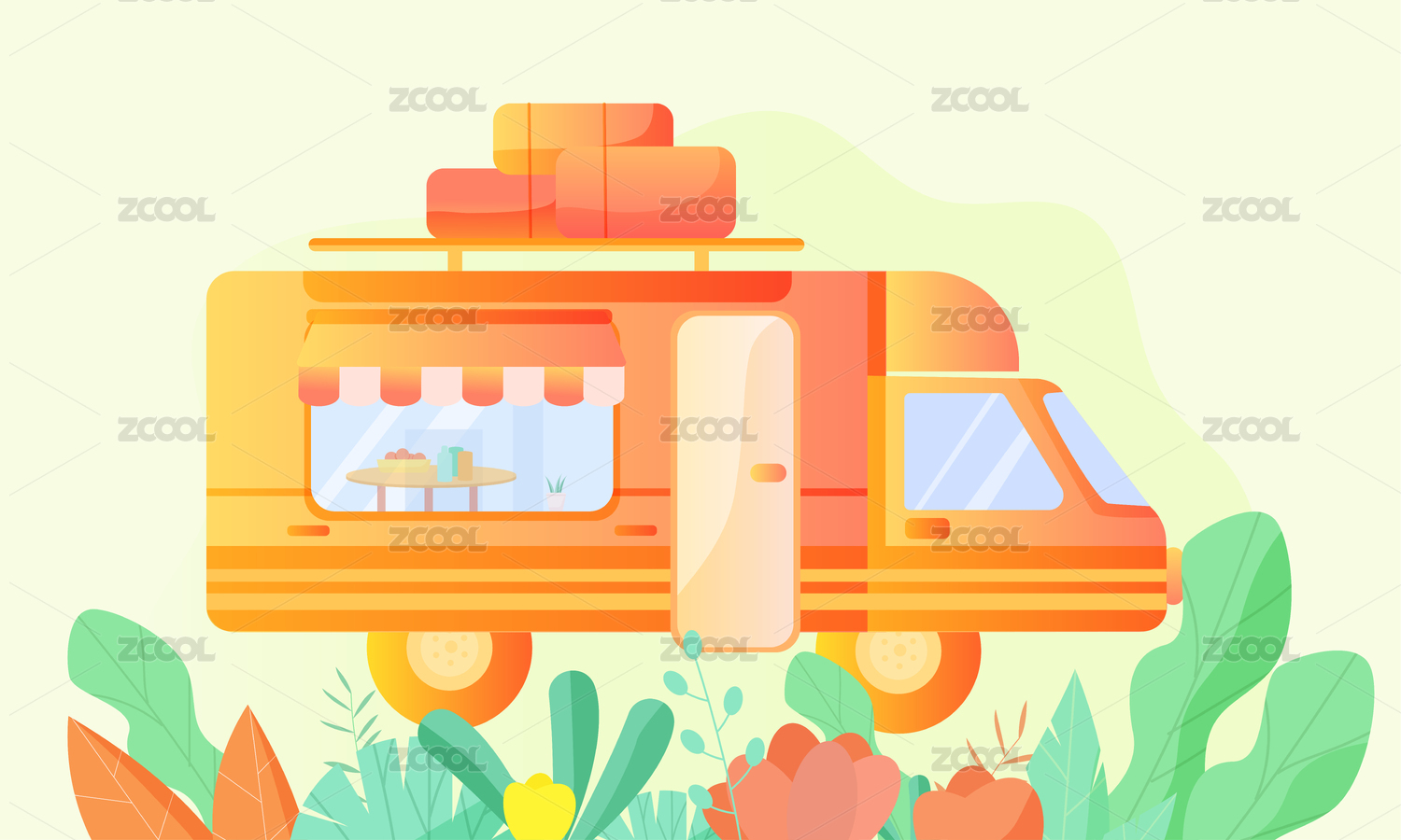 度假旅行房車(chē)扁平漸變插畫(huà)