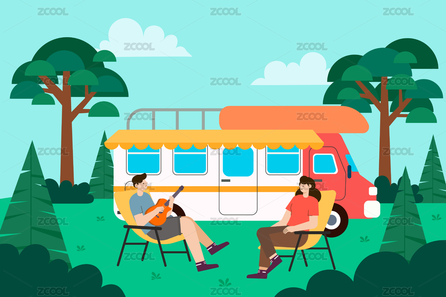 開(kāi)房車(chē)露營(yíng)的年輕人插畫(huà)