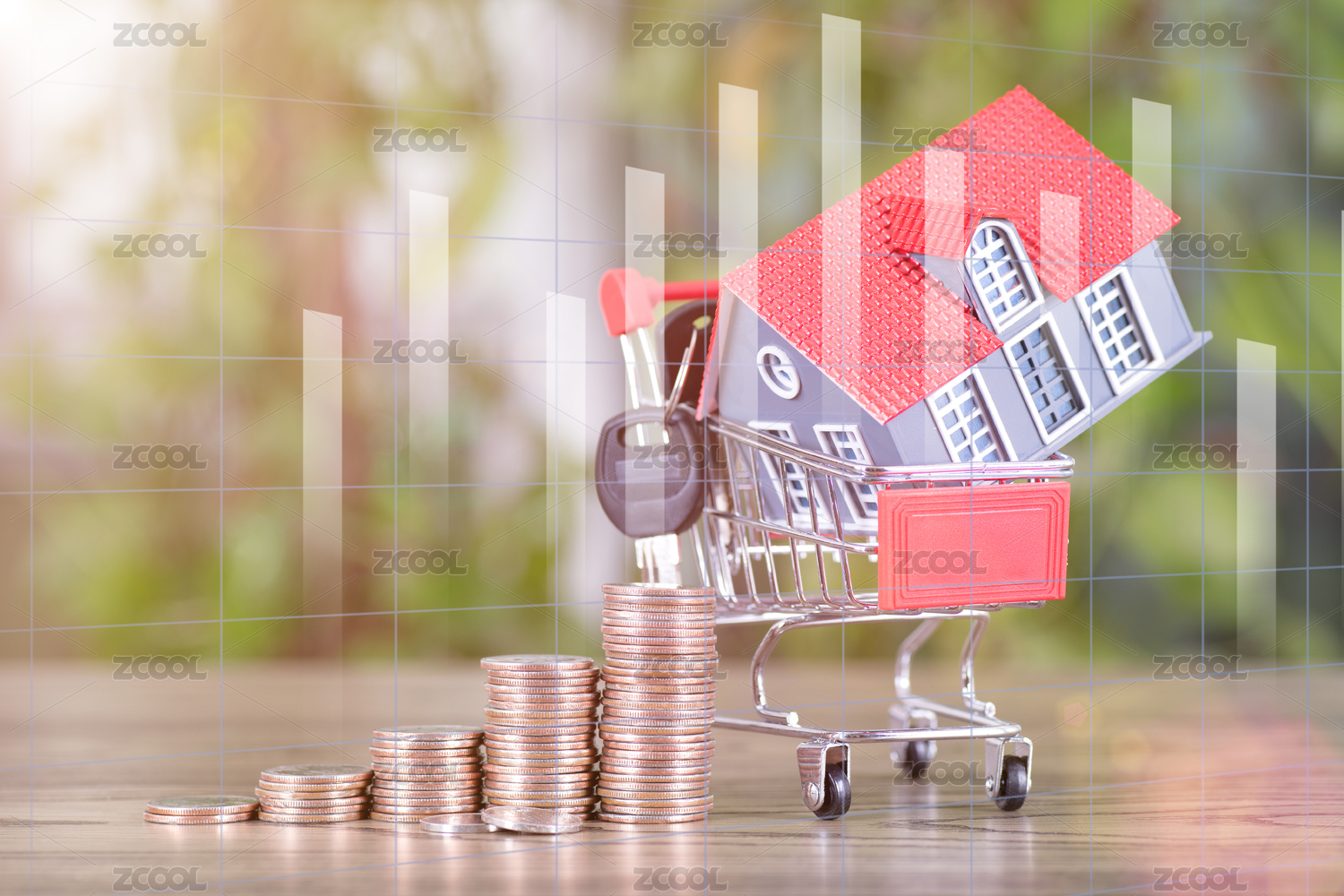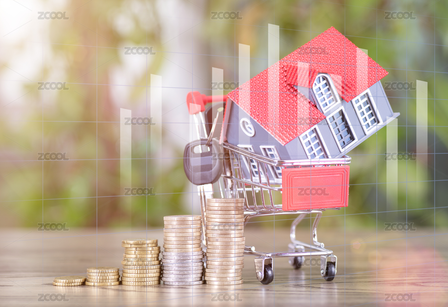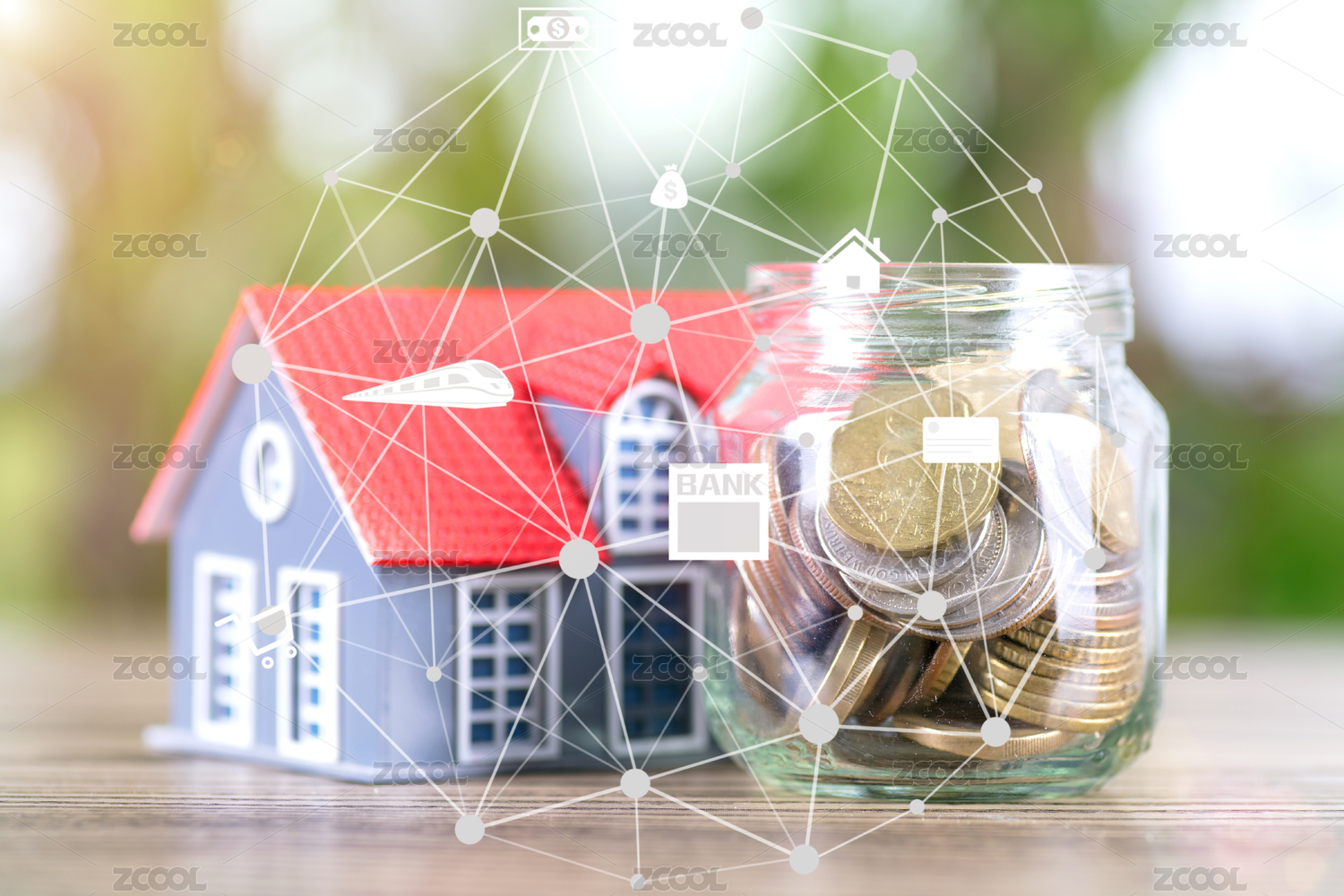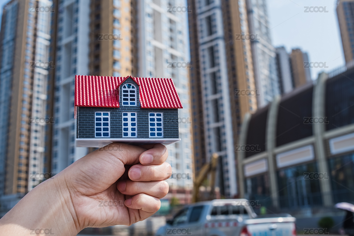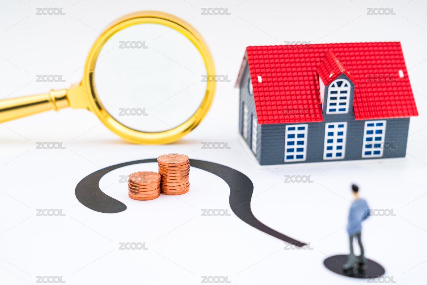 房子模型放在戶型圖圖紙上——買房裝修概念