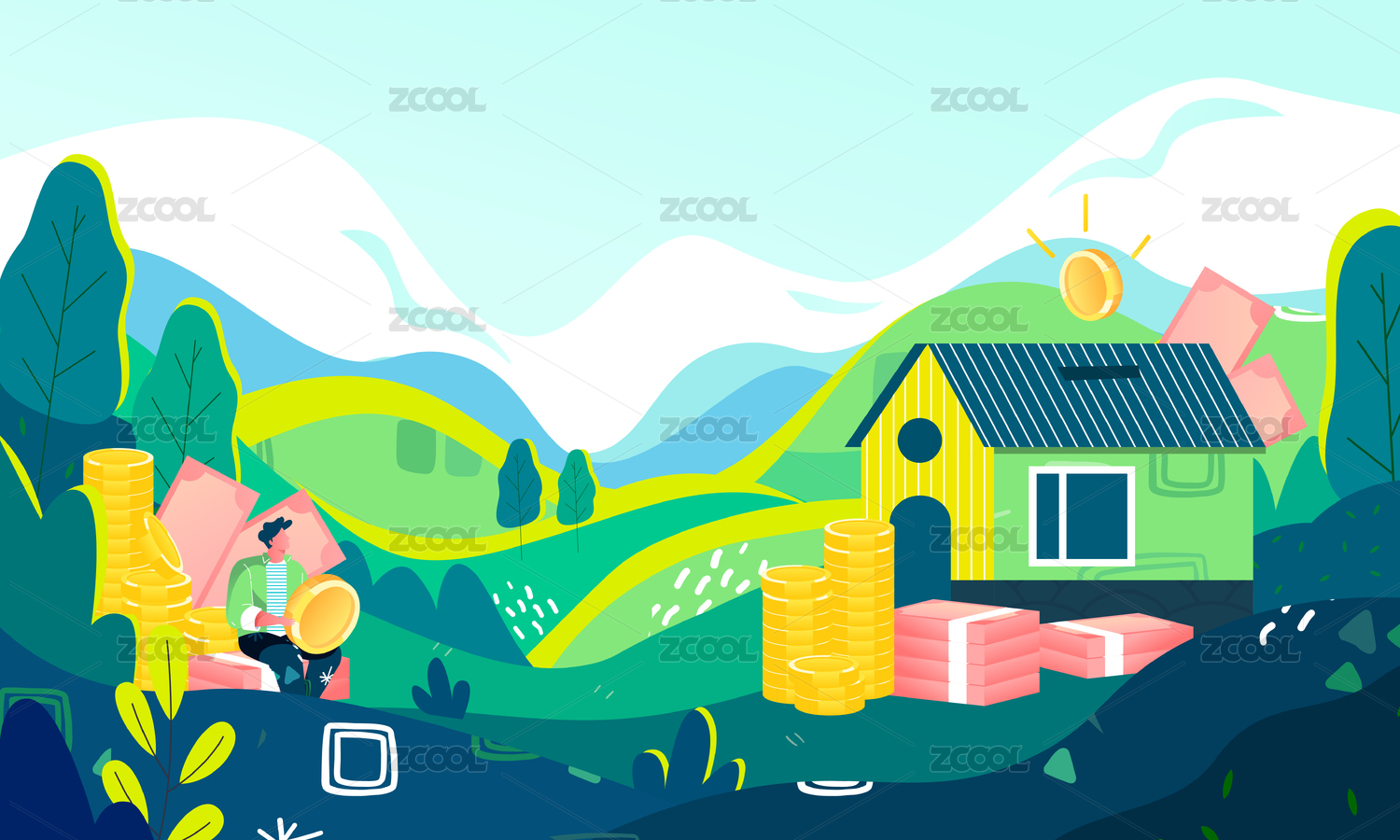 卡通房地產(chǎn)租房買房返現(xiàn)紅包活動(dòng)矢量背景插畫