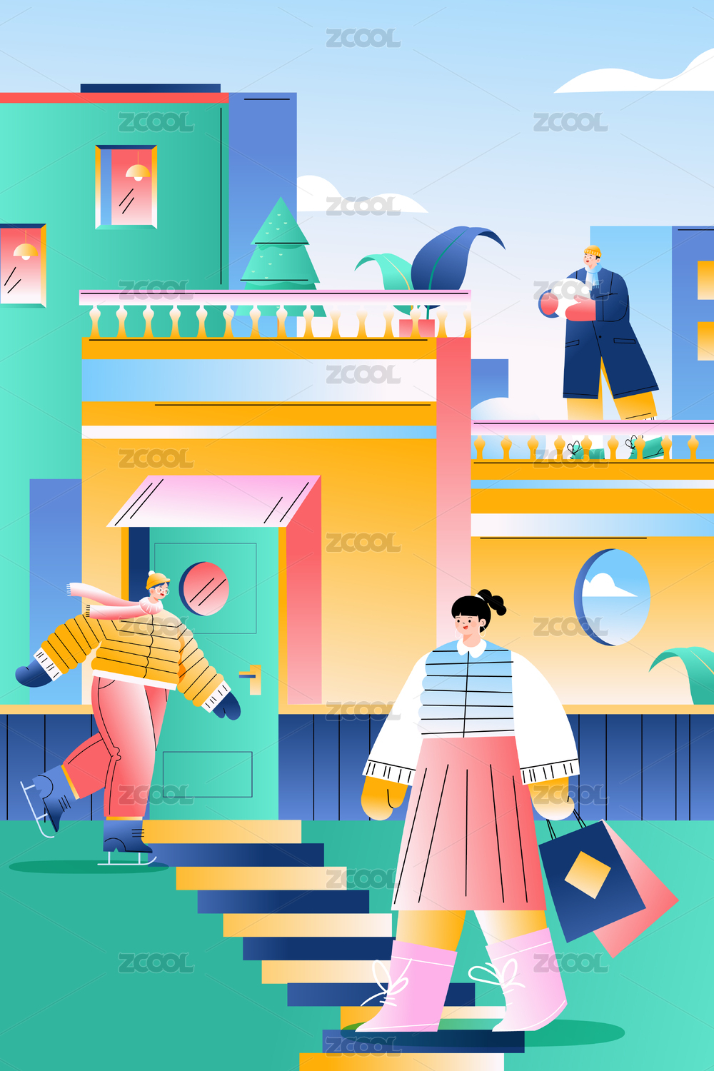 卡通房地產(chǎn)租房買房活動(dòng)矢量背景插畫