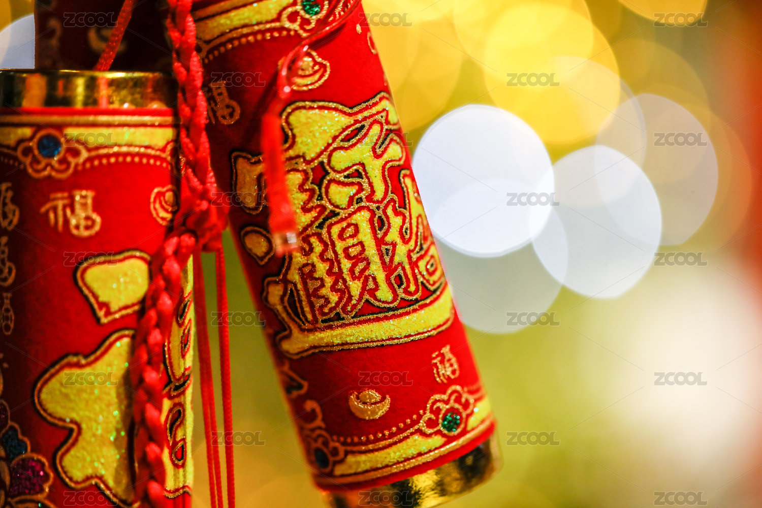 金色背景上紅色鞭炮