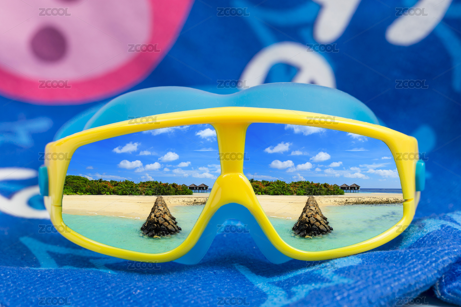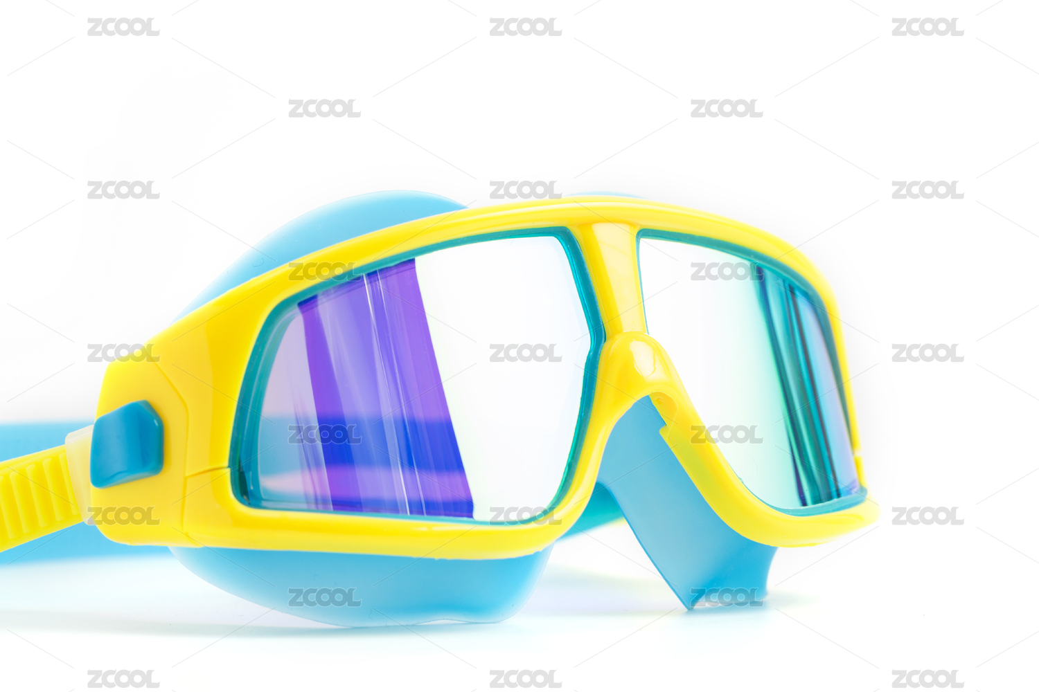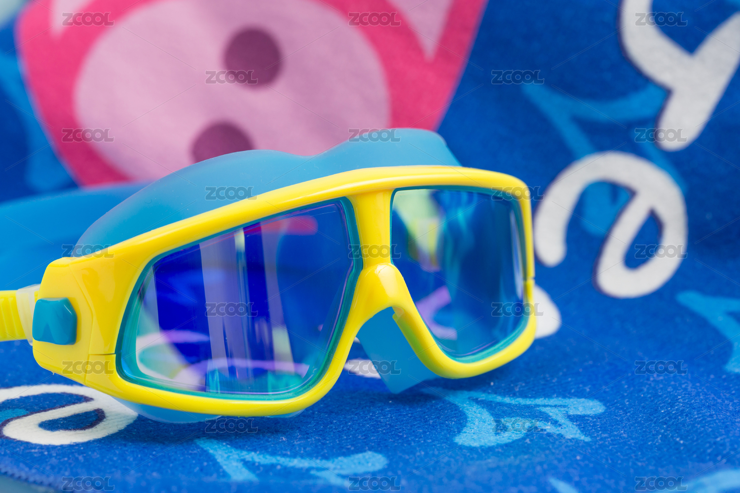 男孩戴泳鏡在飄泳圈的西瓜池里游泳兒童插畫