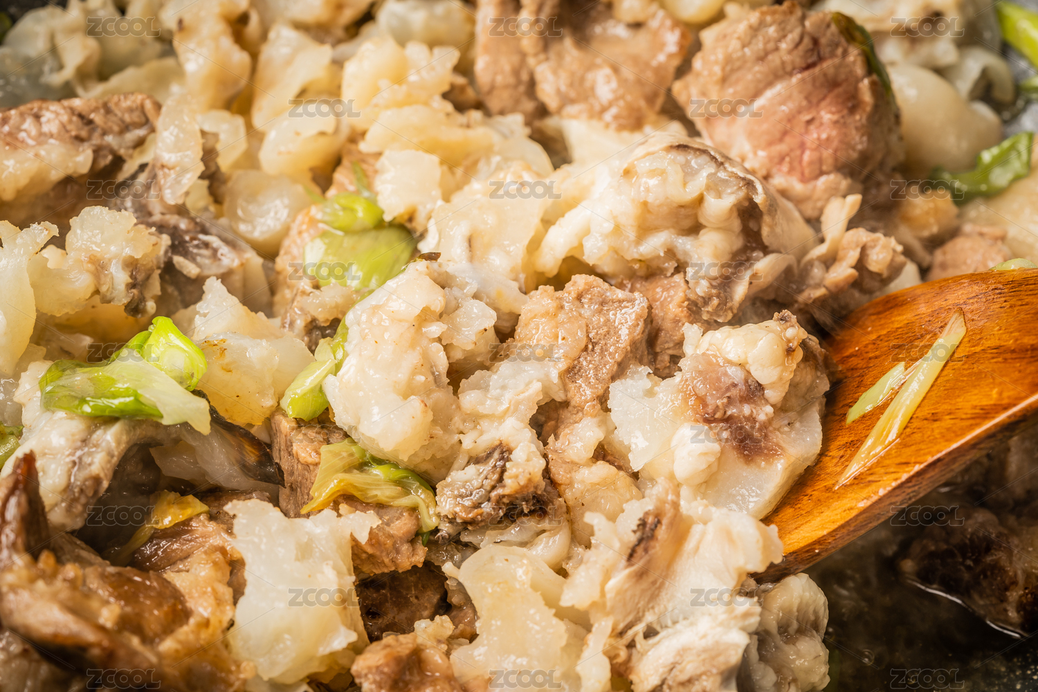 正在翻炒的牛肉和牛蹄筋