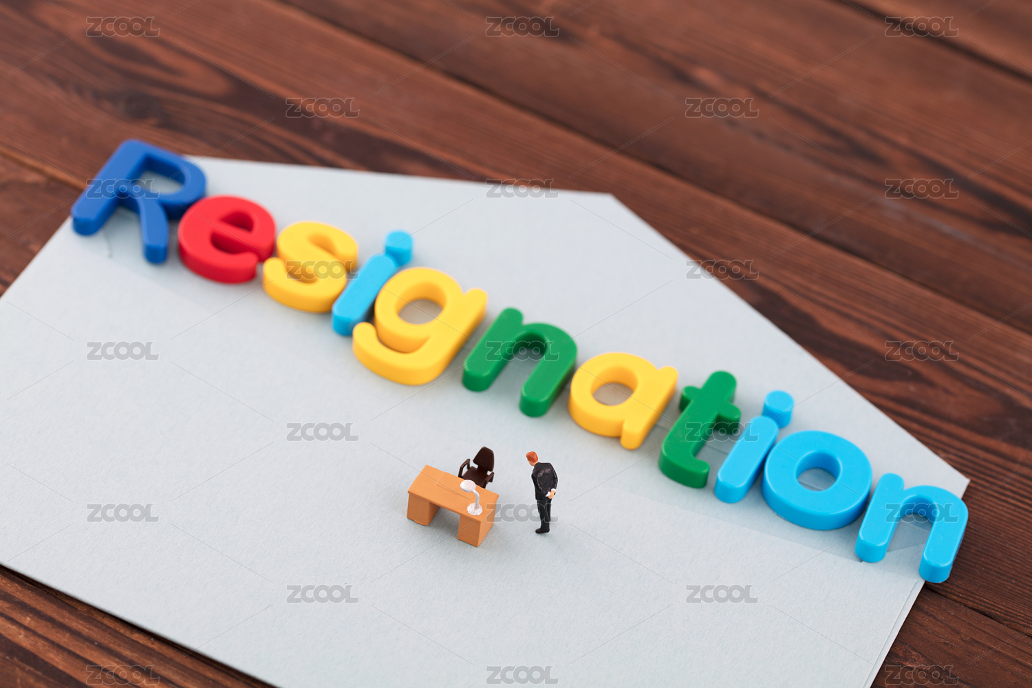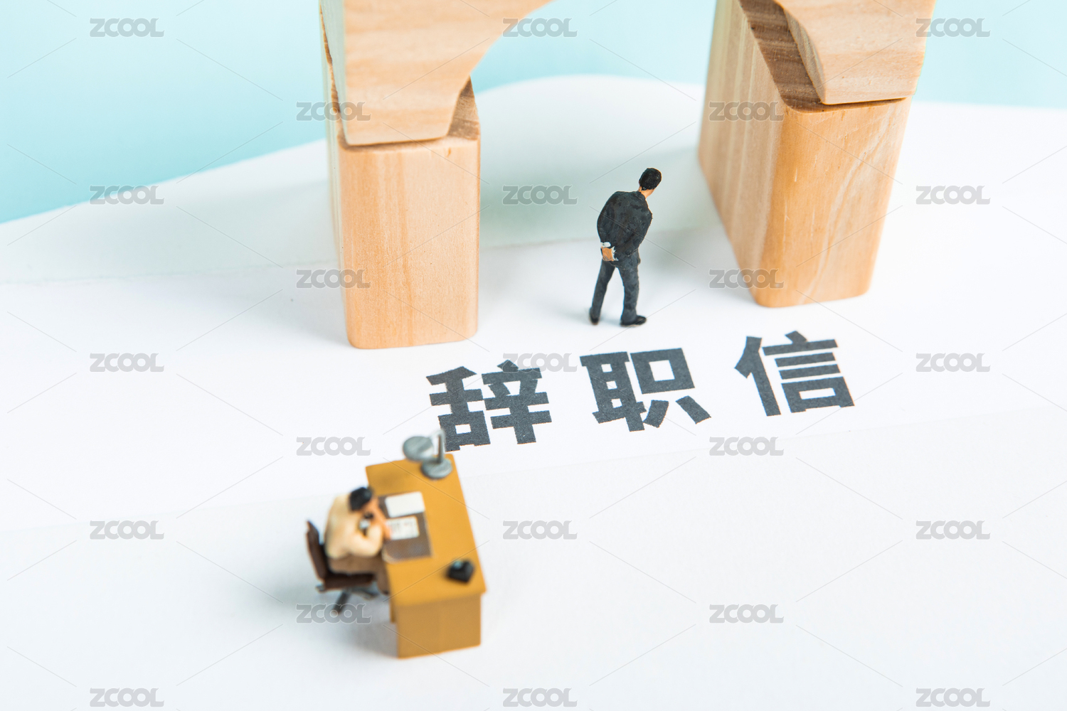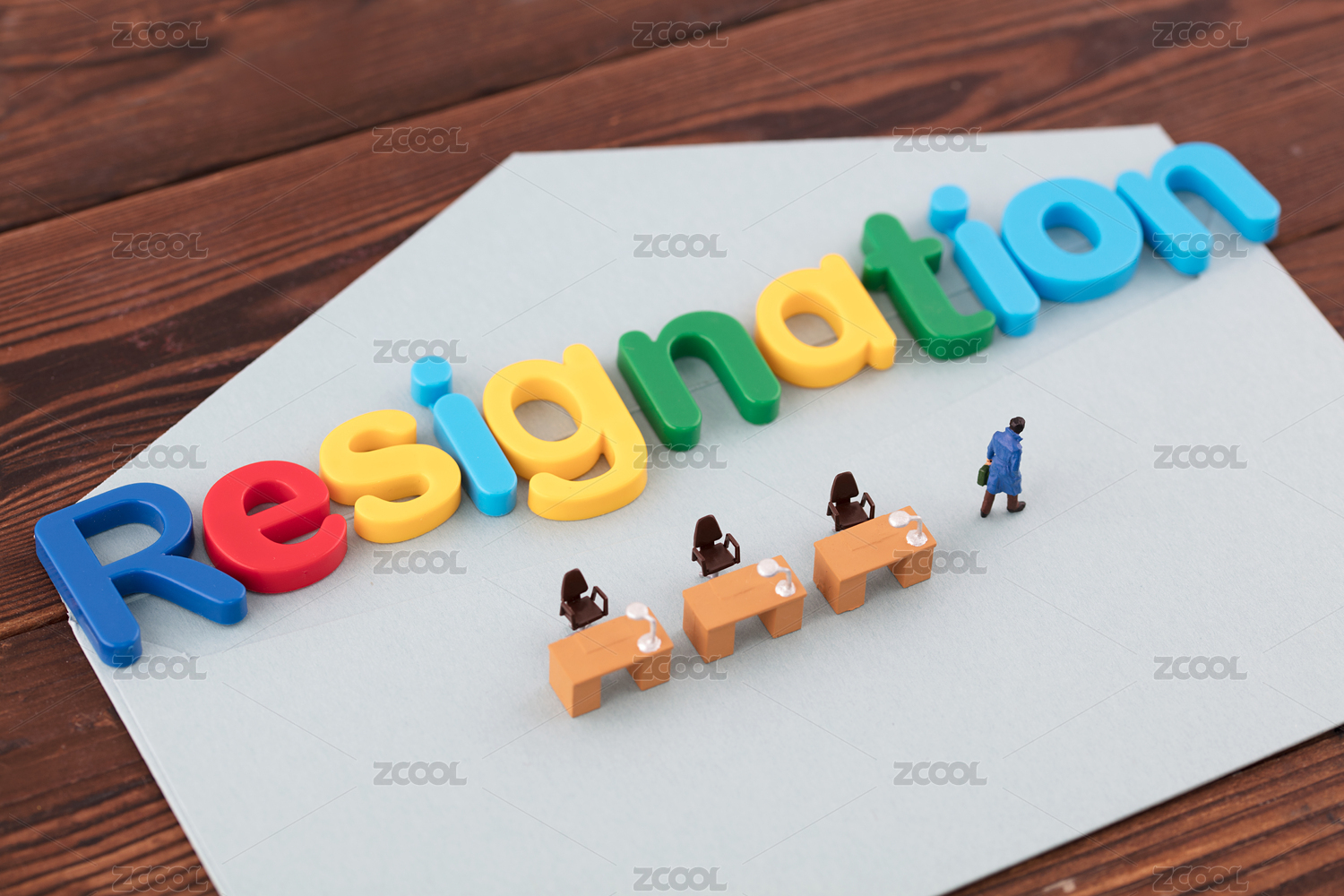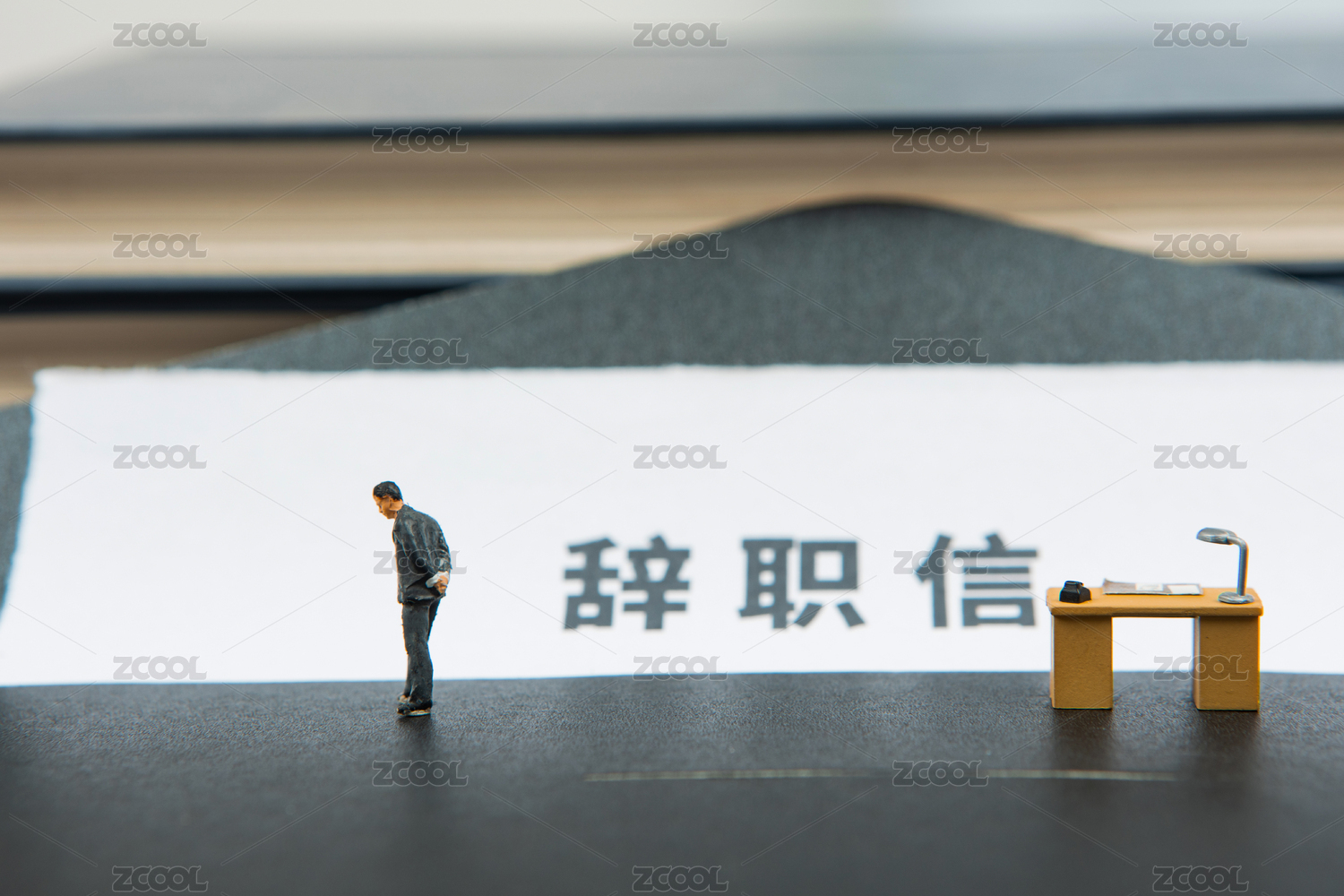 微縮創(chuàng)意辭職信上離開辦公室的男性