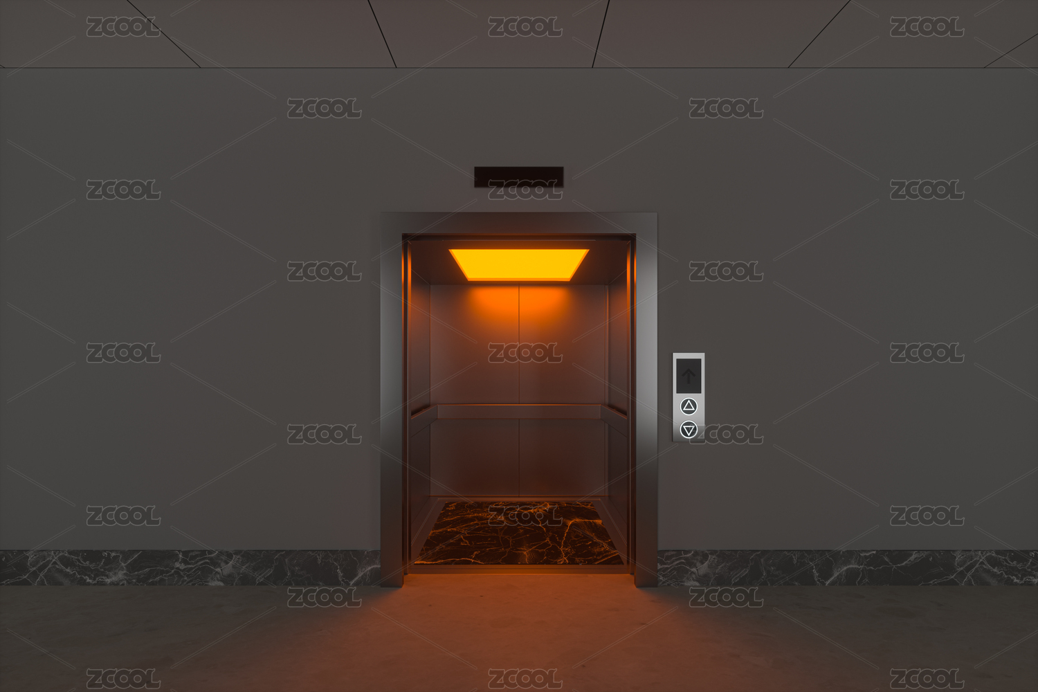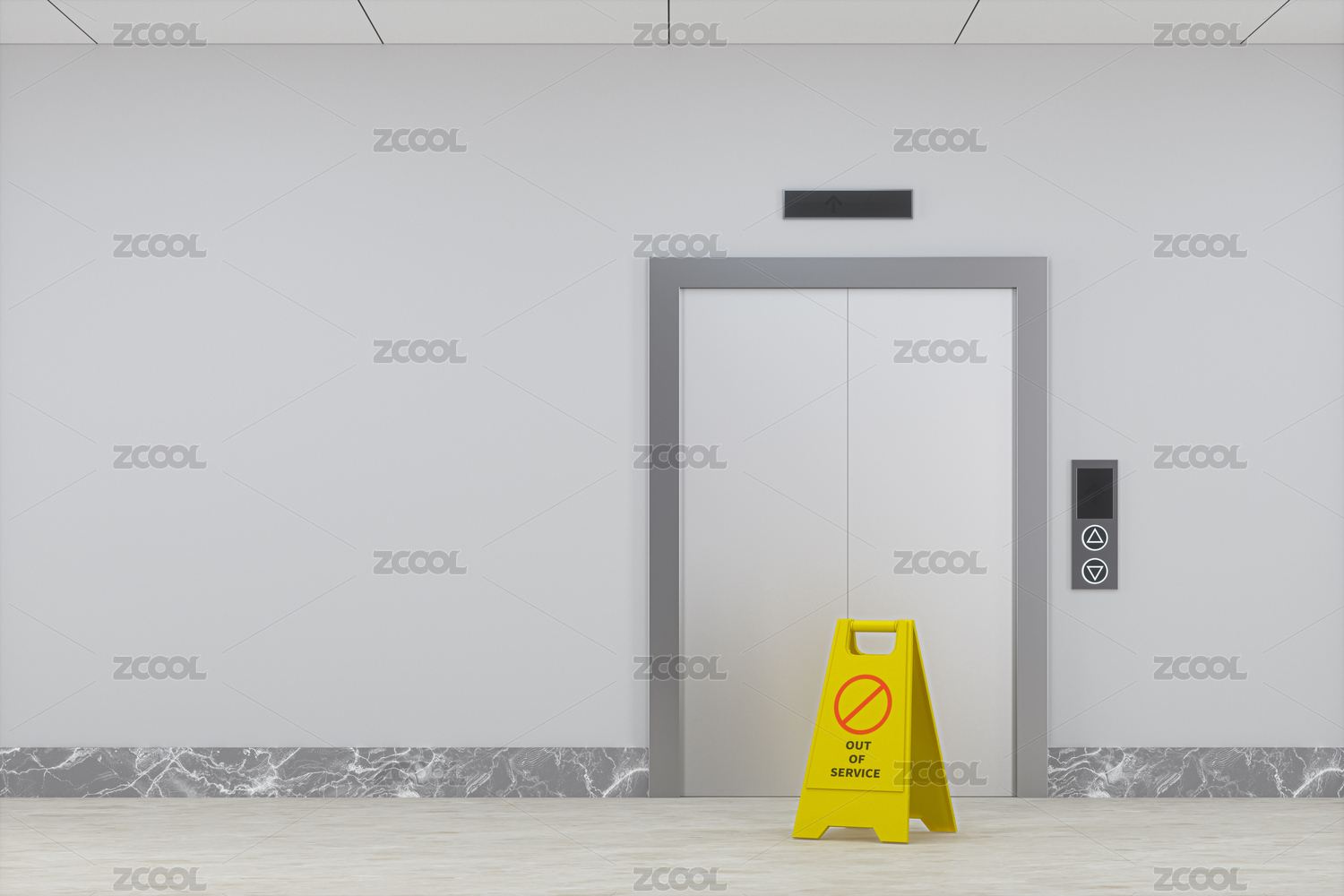 故障無(wú)法運(yùn)行的升降電梯 3D渲染