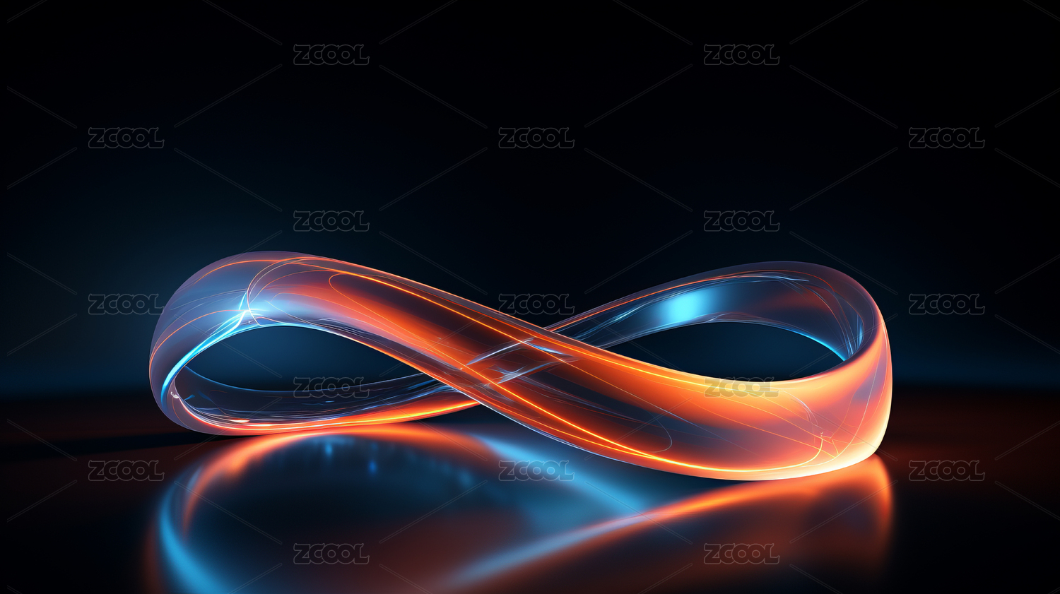 霓虹玻璃曲線莫比烏斯環(huán)3D渲染