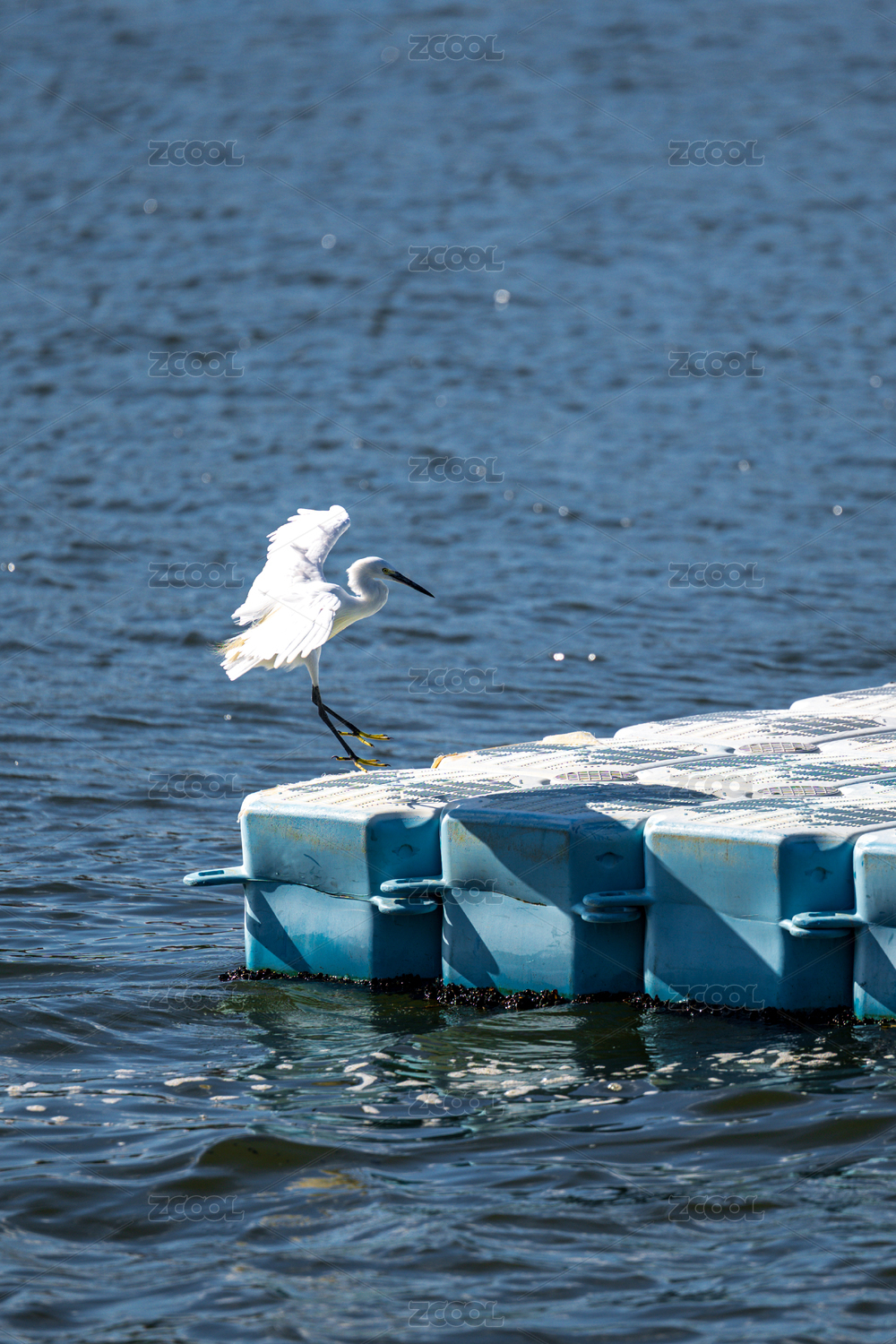 白鷺在浮橋上展翅