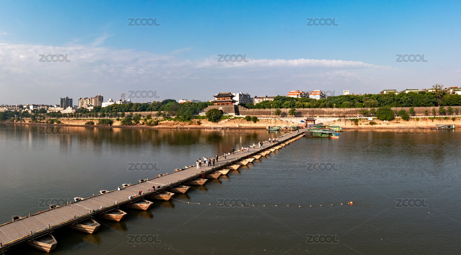 湖南溆浦縣城溆水河上由小船架起的浮橋