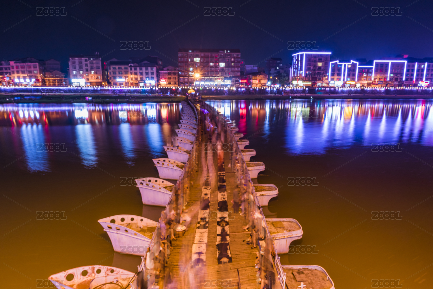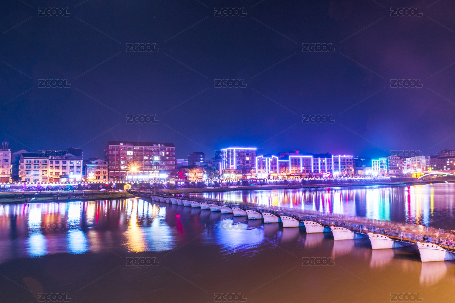 湖南溆浦溆水河上的浮橋夜景