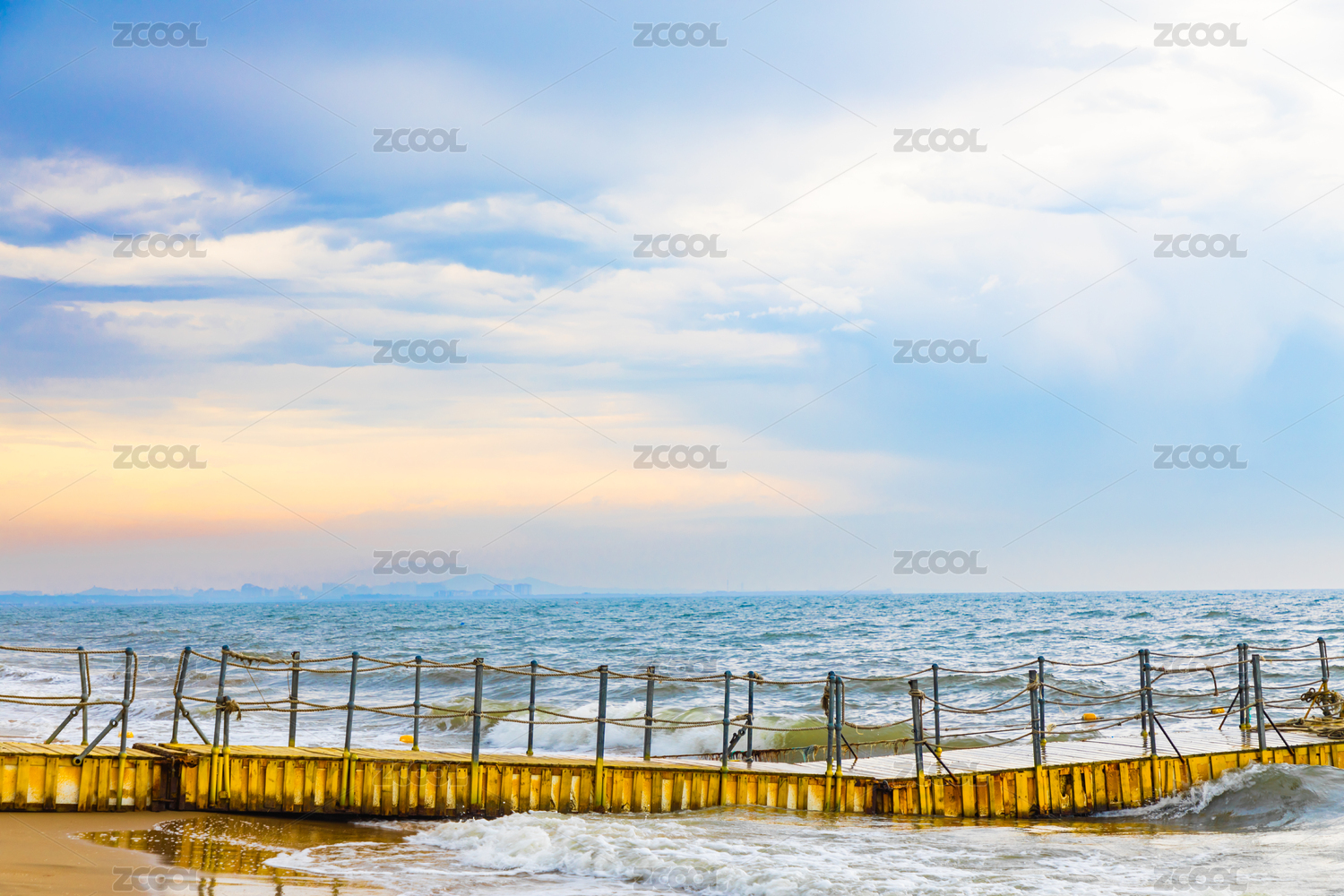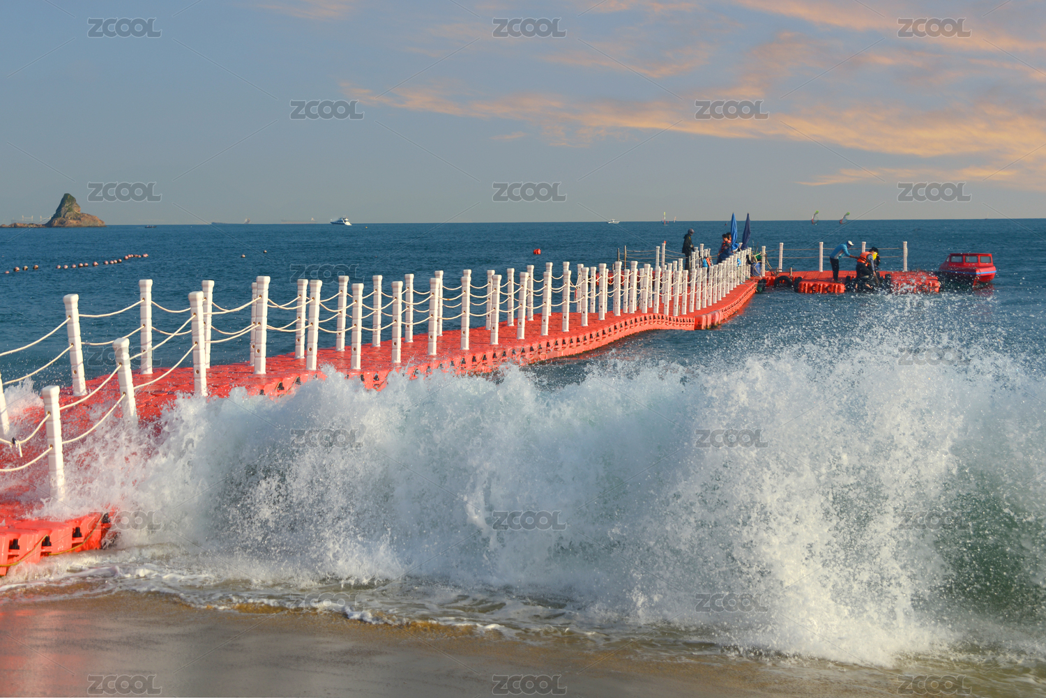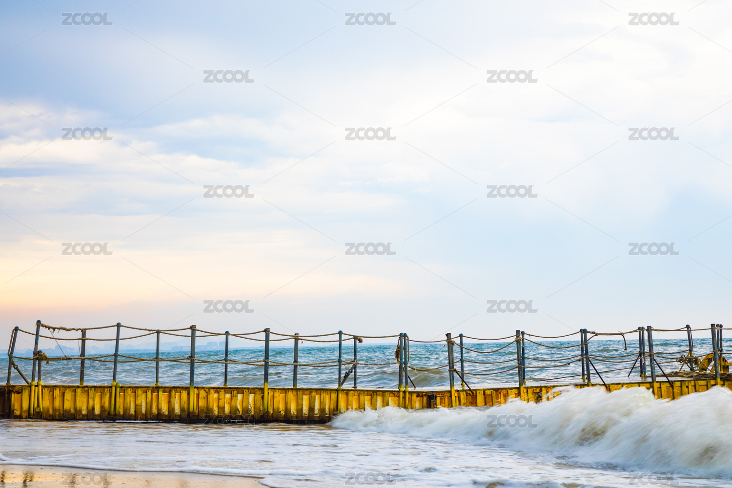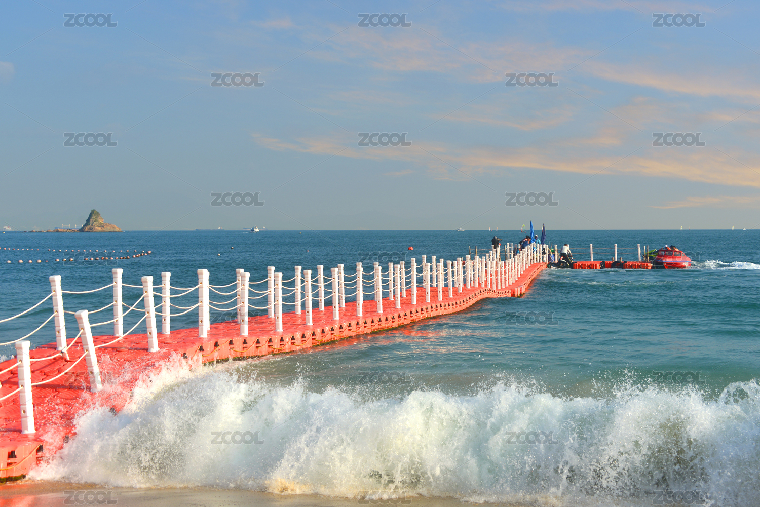 深圳大梅沙海海濱 海浪浪花及沉浮的浮橋