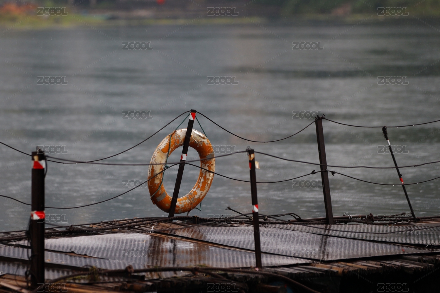 停泊在漓江上的浮橋的特寫鏡頭