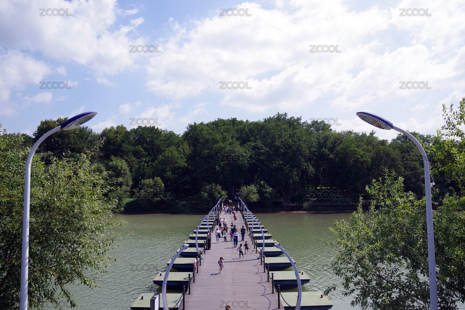 綠樹掩映下的河道浮橋