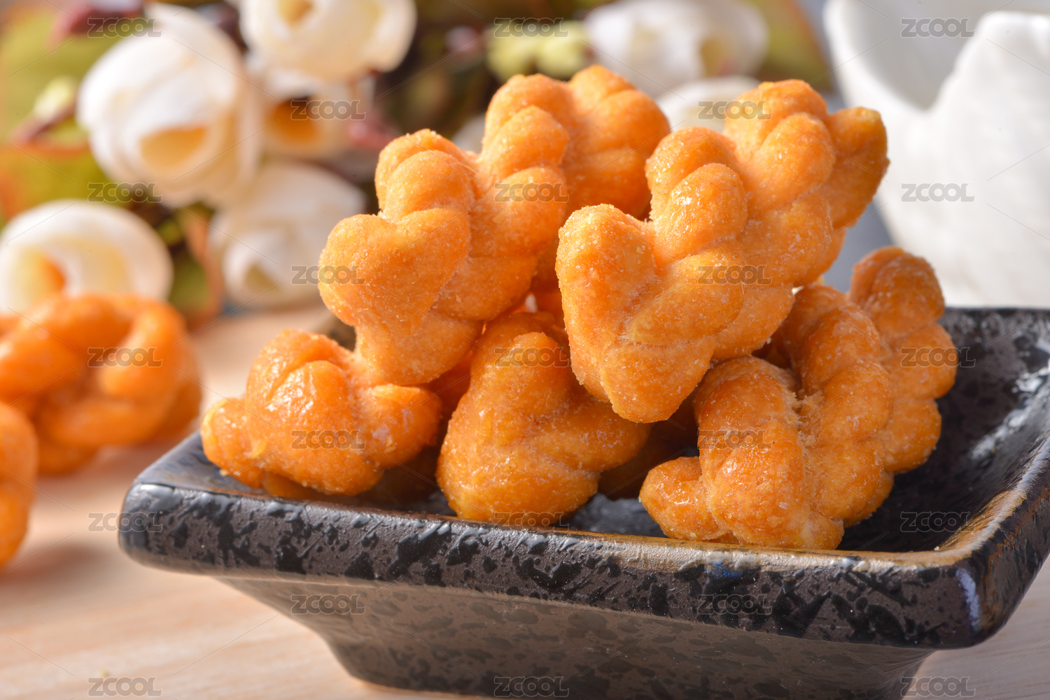襄陽傳統(tǒng)小吃小麻花擺放在碟子中