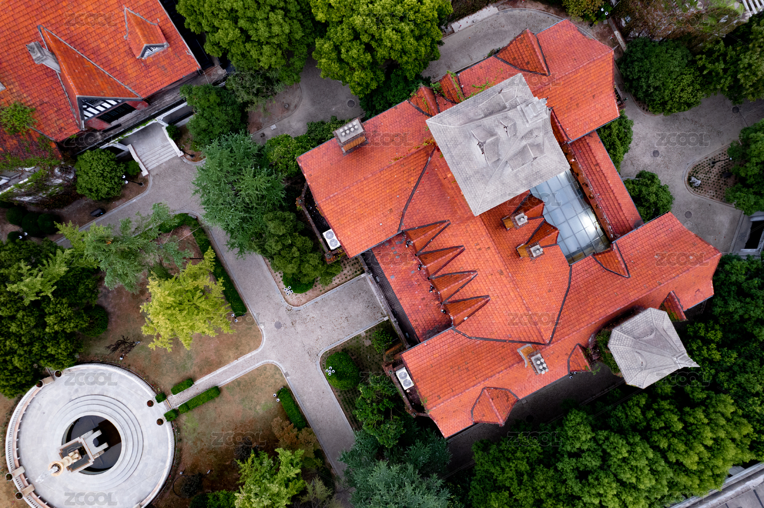 中國上海車墩影視城綠色草坪后面的紅色歐式建筑