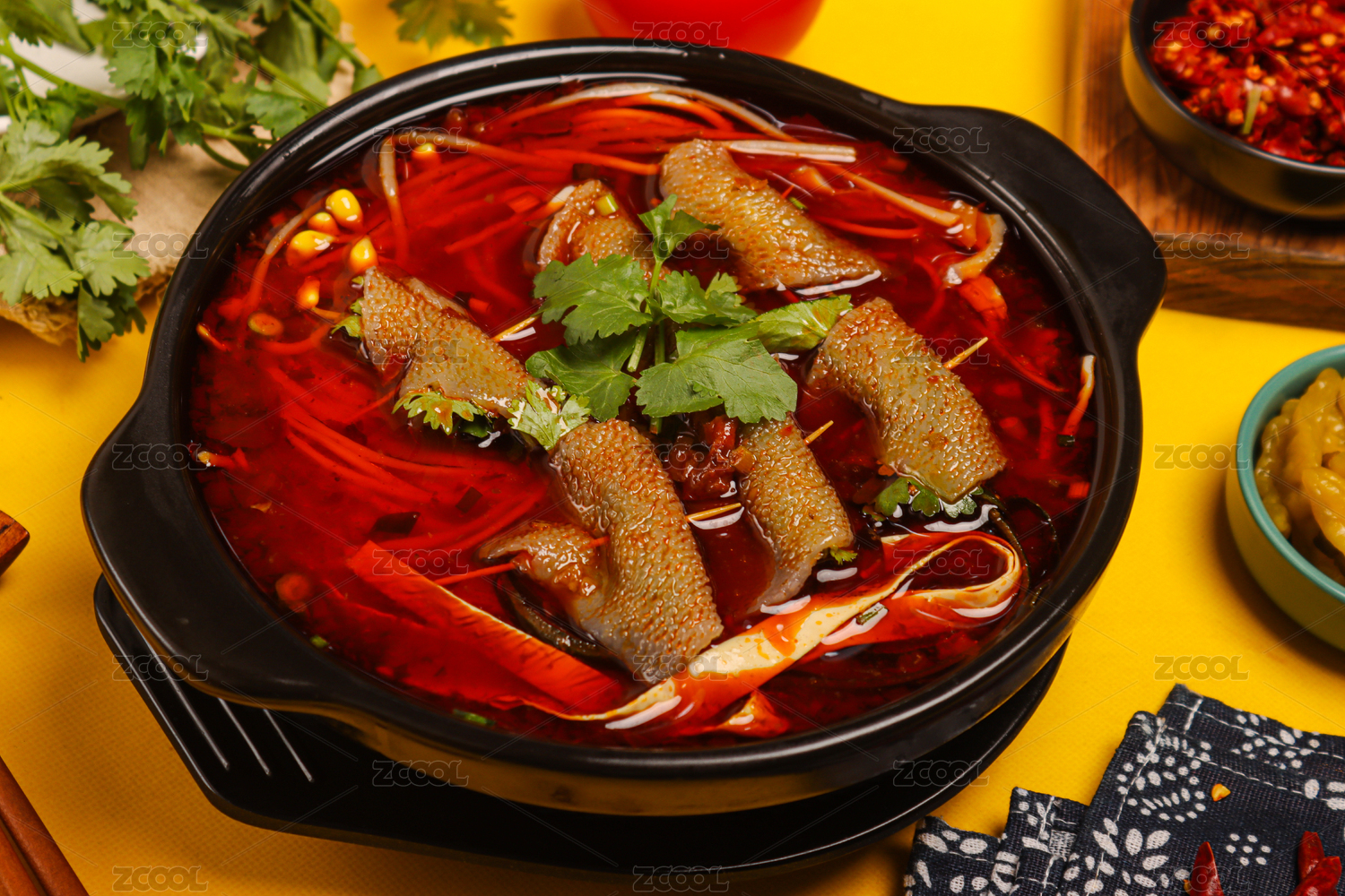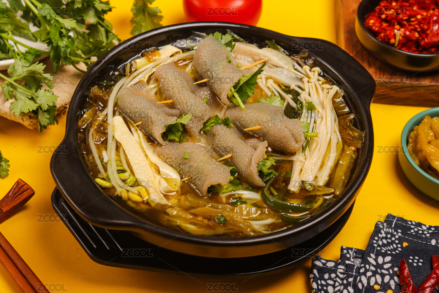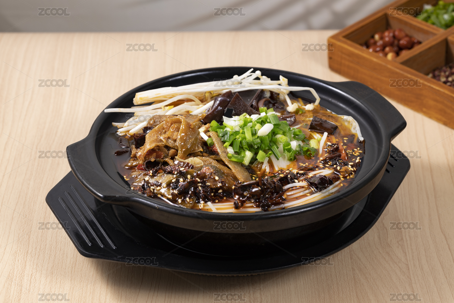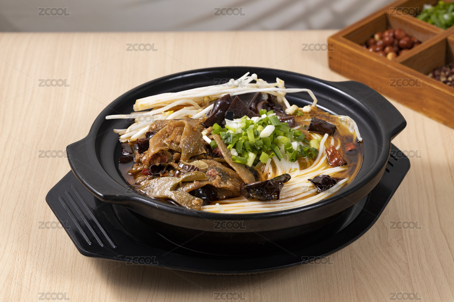 黑色砂鍋煲里的毛肚砂鍋米線