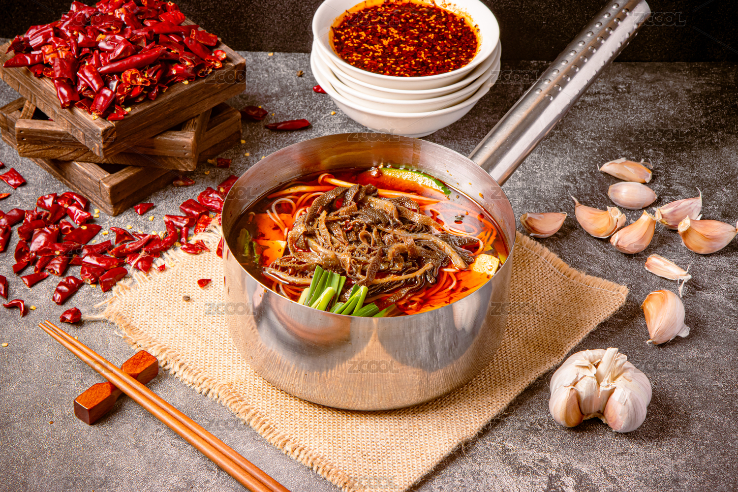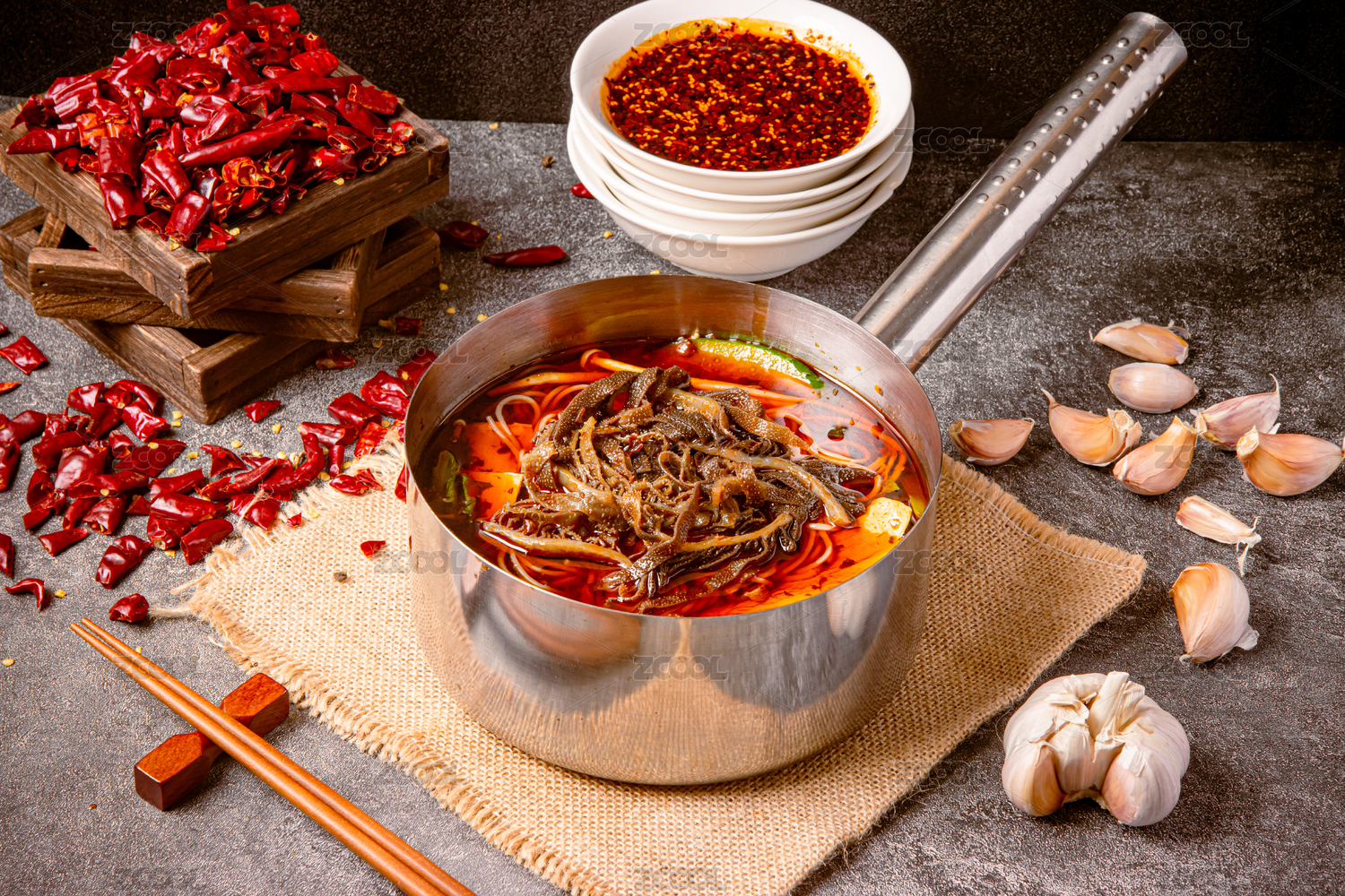 手柄鍋里的麻辣毛肚米線