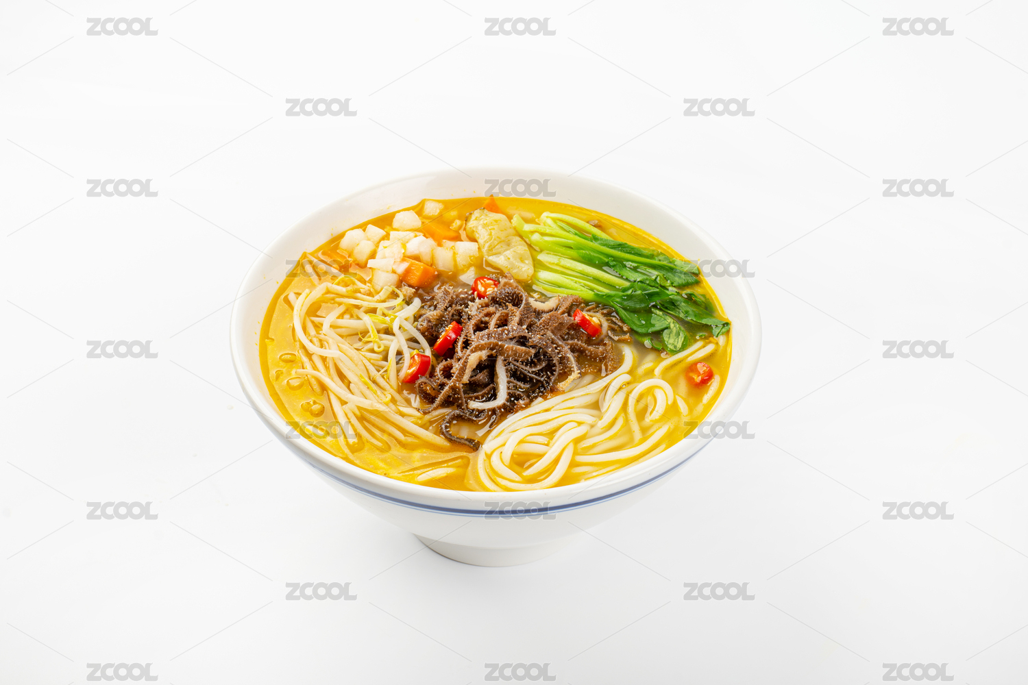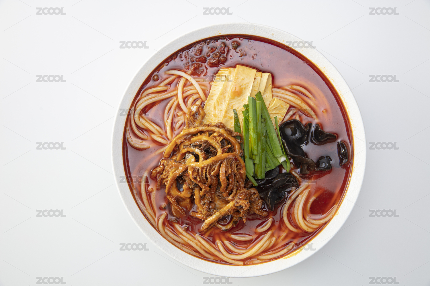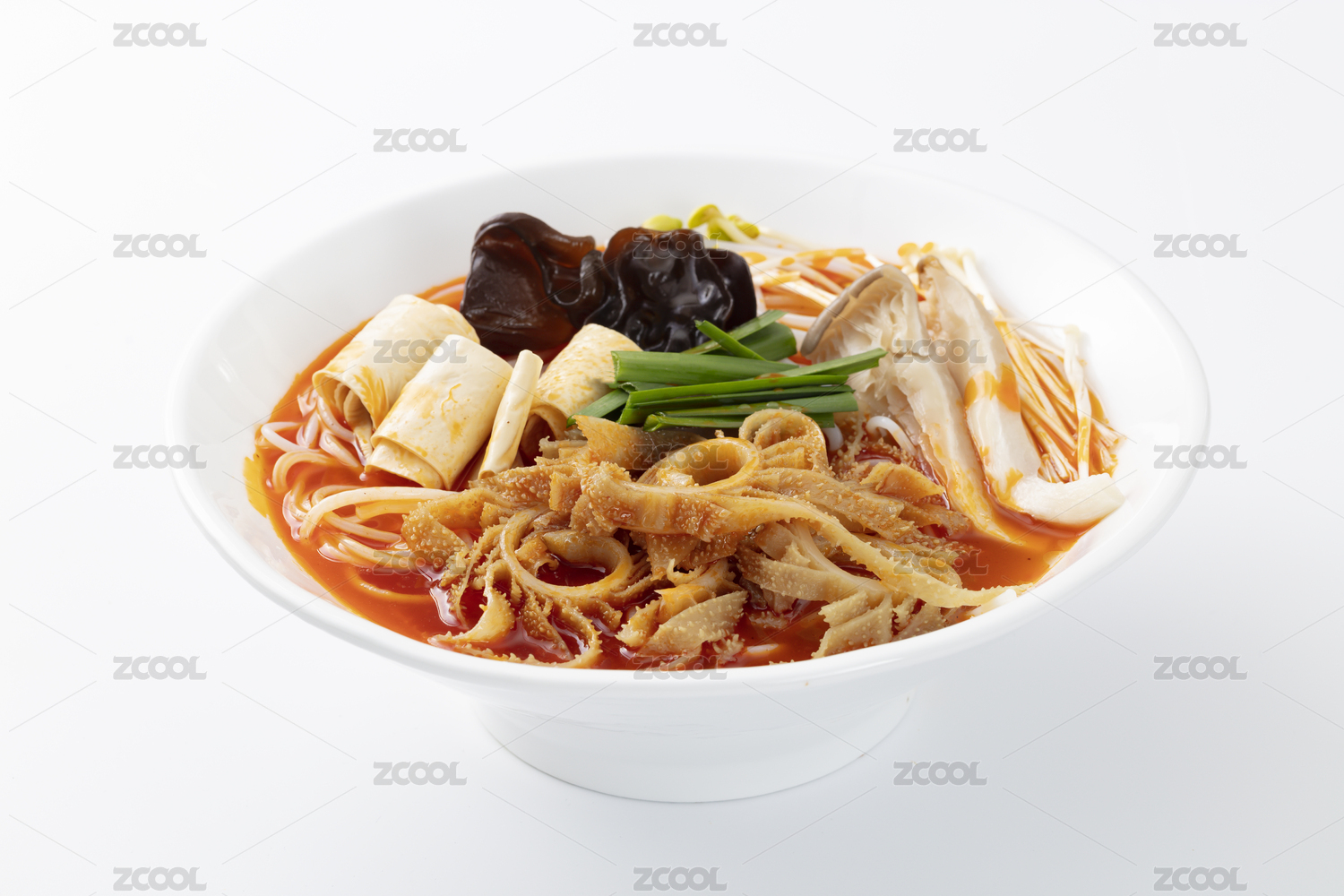 白色大碗里的香辣毛肚火鍋米線