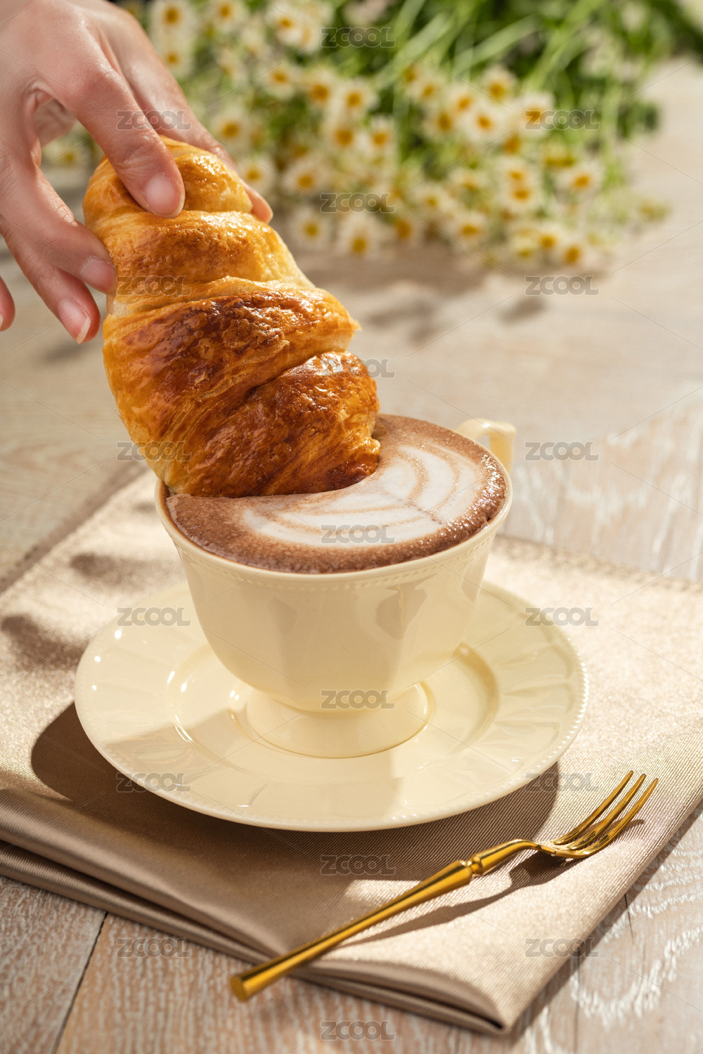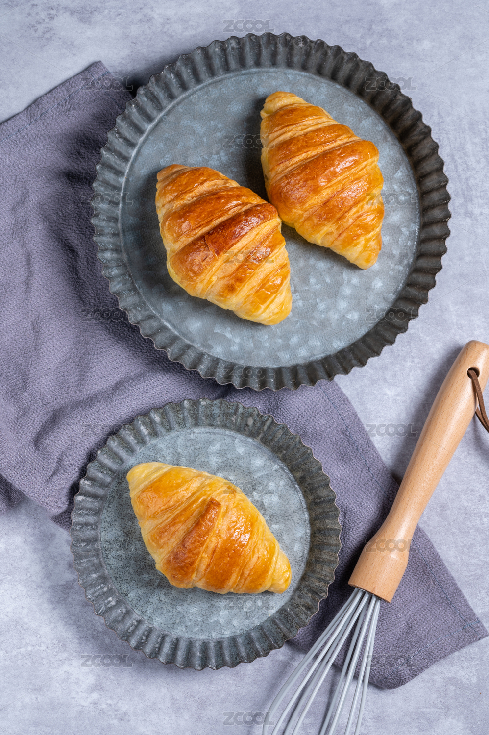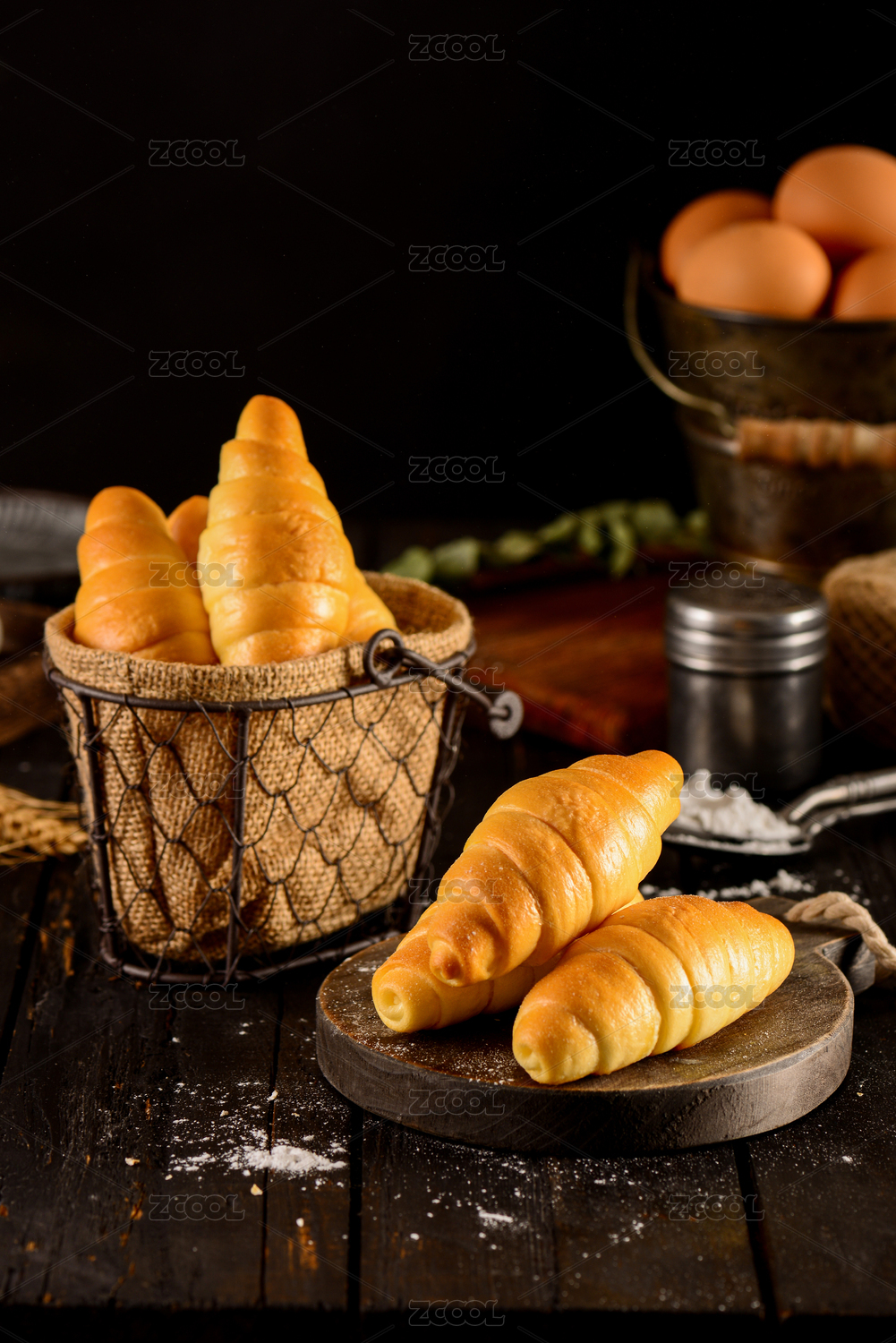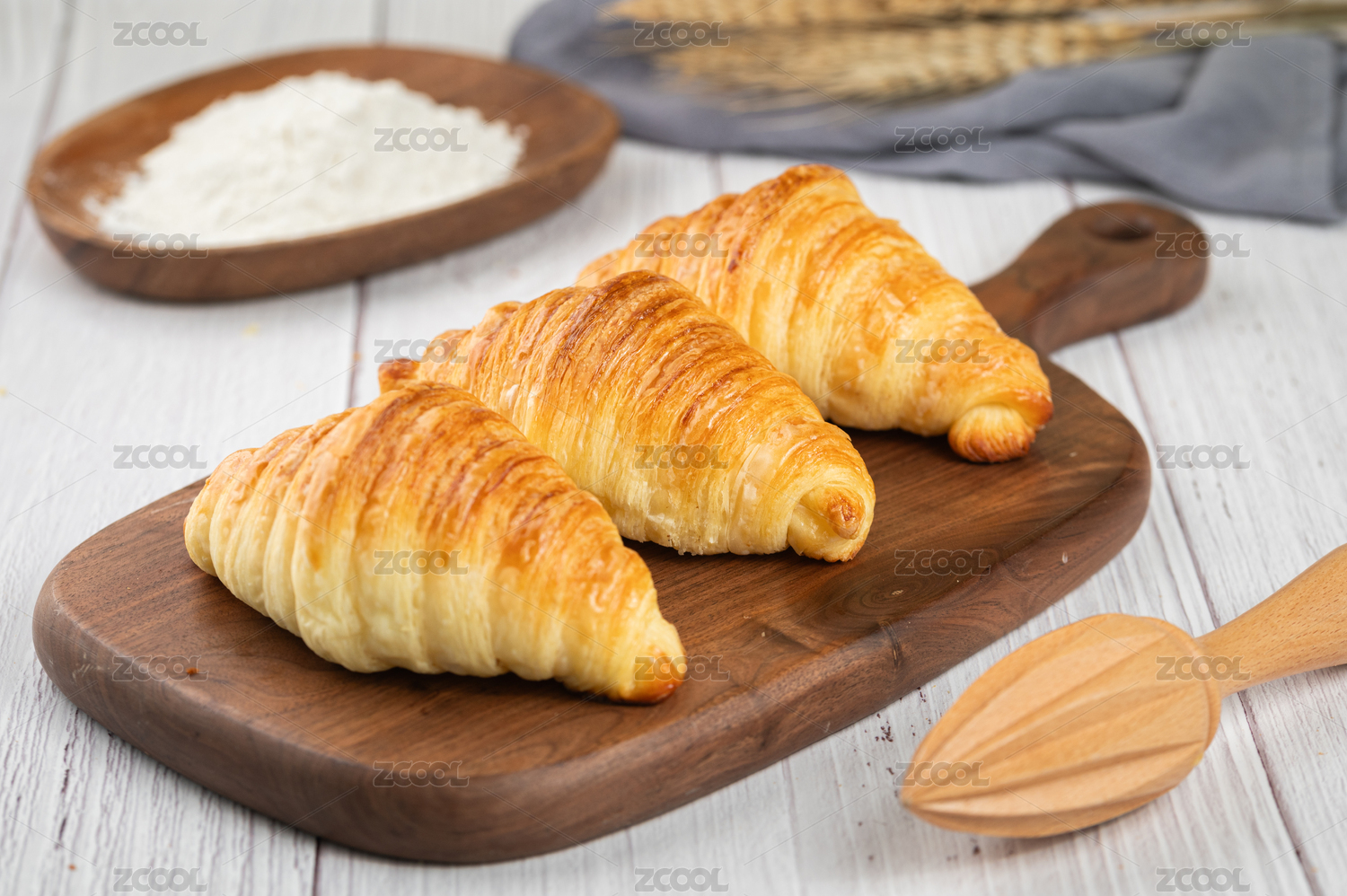 放在木砧板上一個(gè)和半個(gè)可頌面包