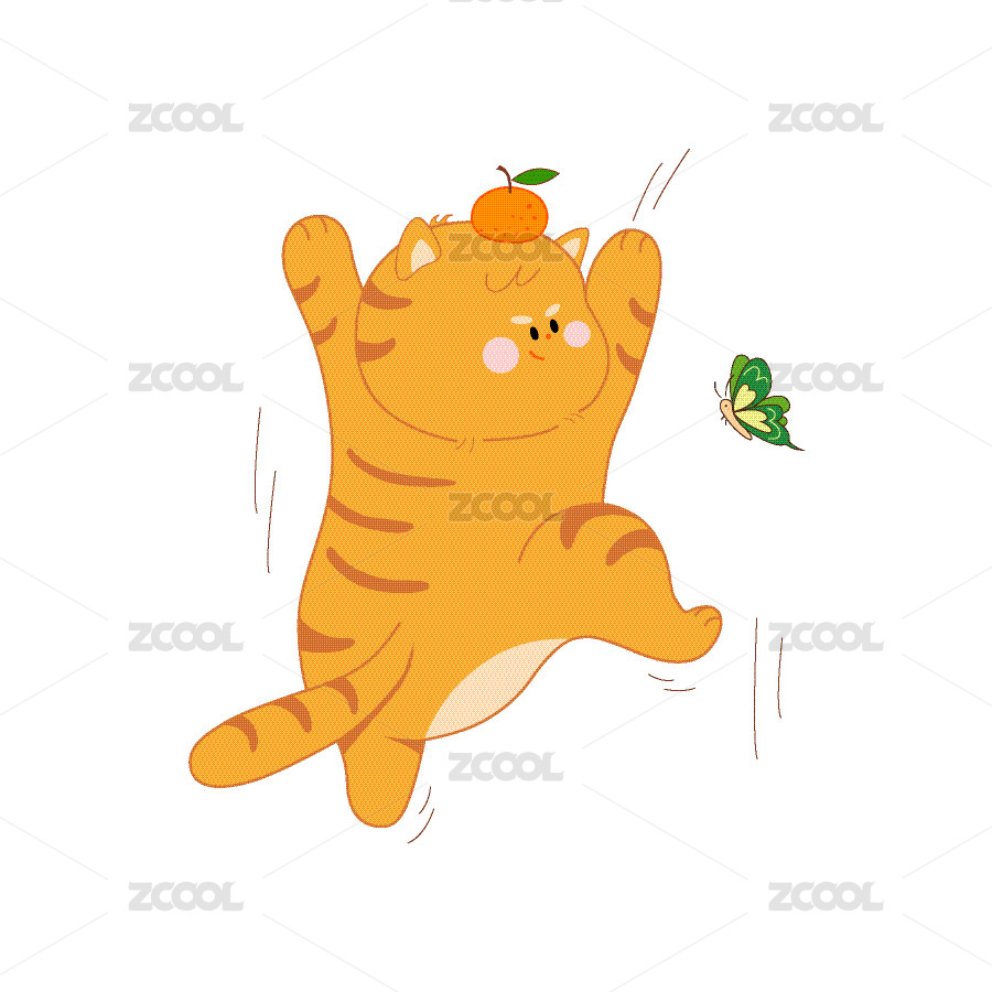 卡通小貓咪爬墻蝴蝶IP簡筆插畫