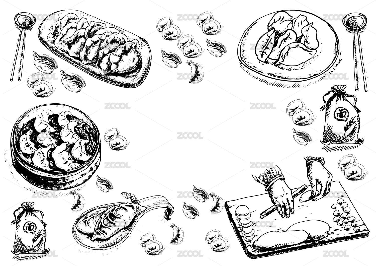 矢量冬日冬至春節(jié)餃子圖標簡筆畫
