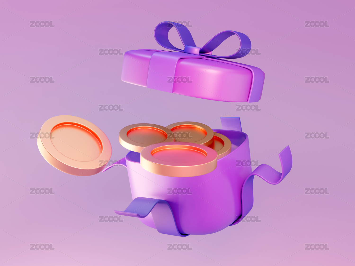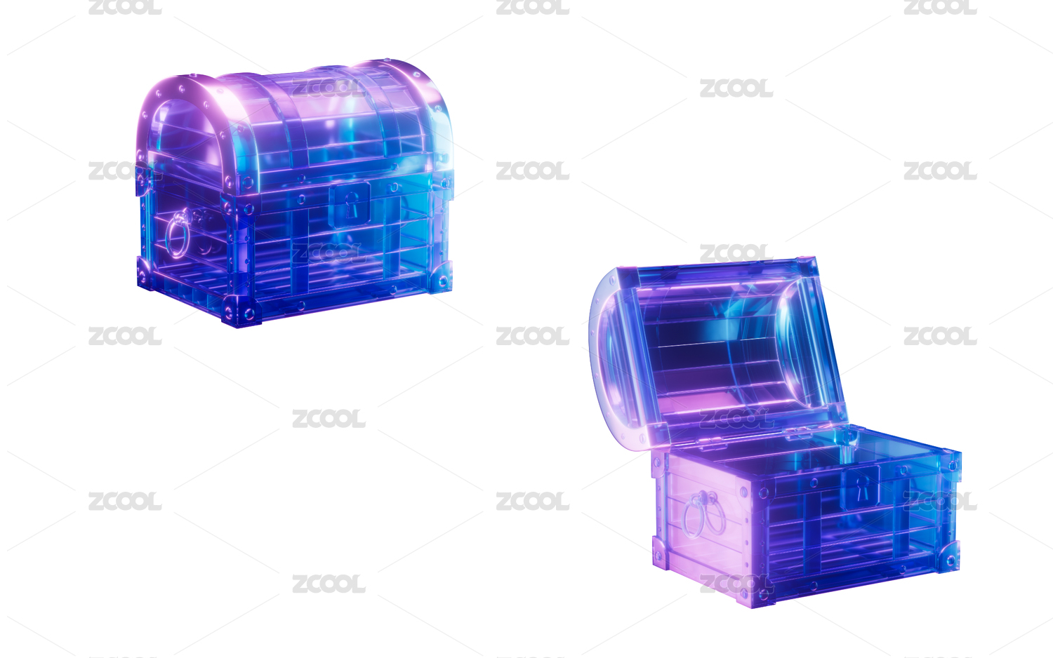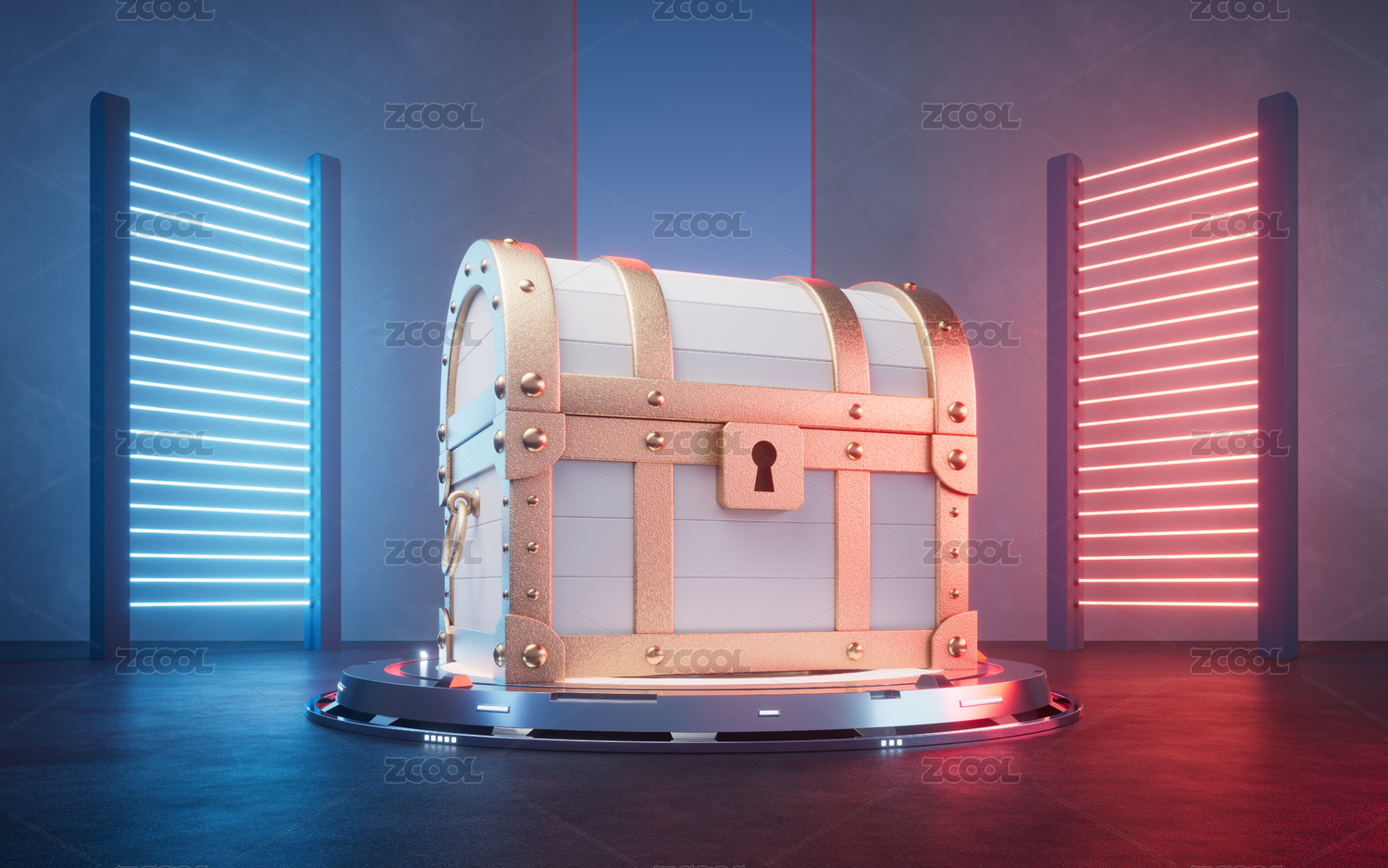 卡通風(fēng)格霓虹寶箱寶藏三維渲染