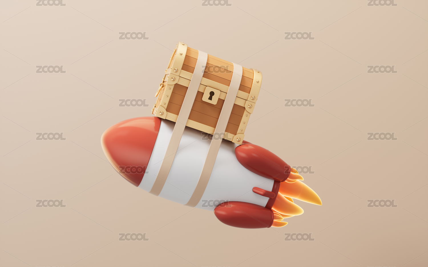 卡通風(fēng)格復(fù)古黃金寶箱寶藏三維渲染