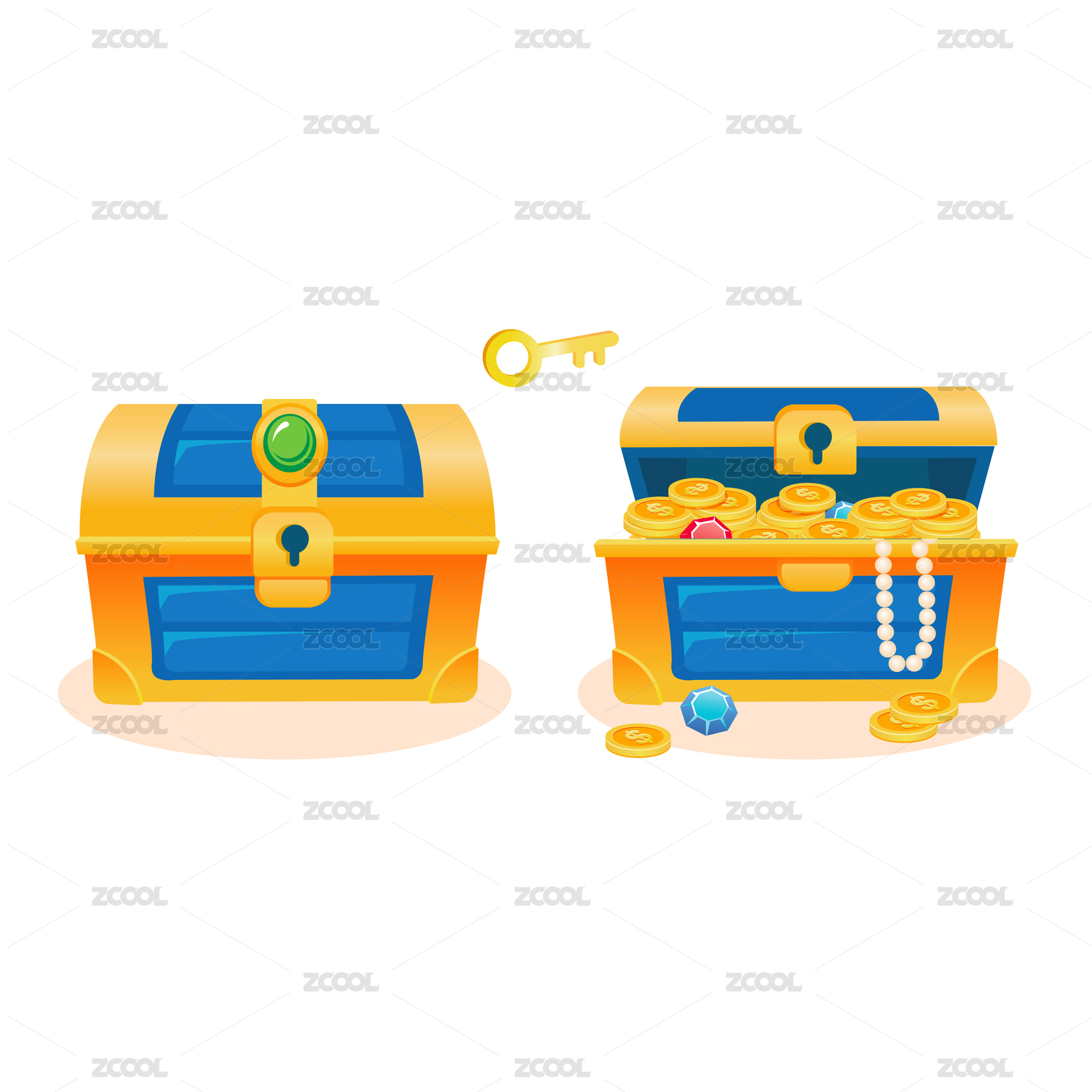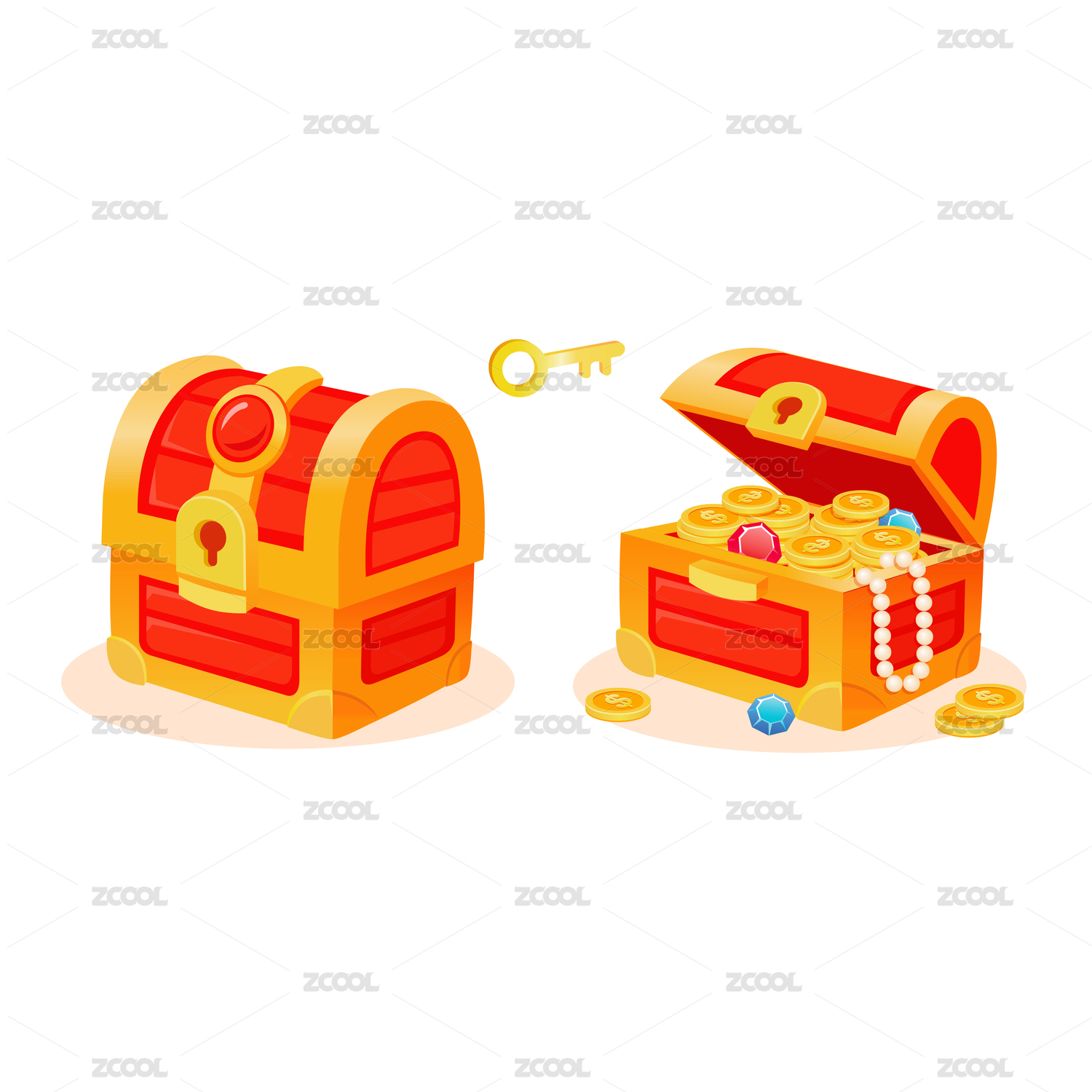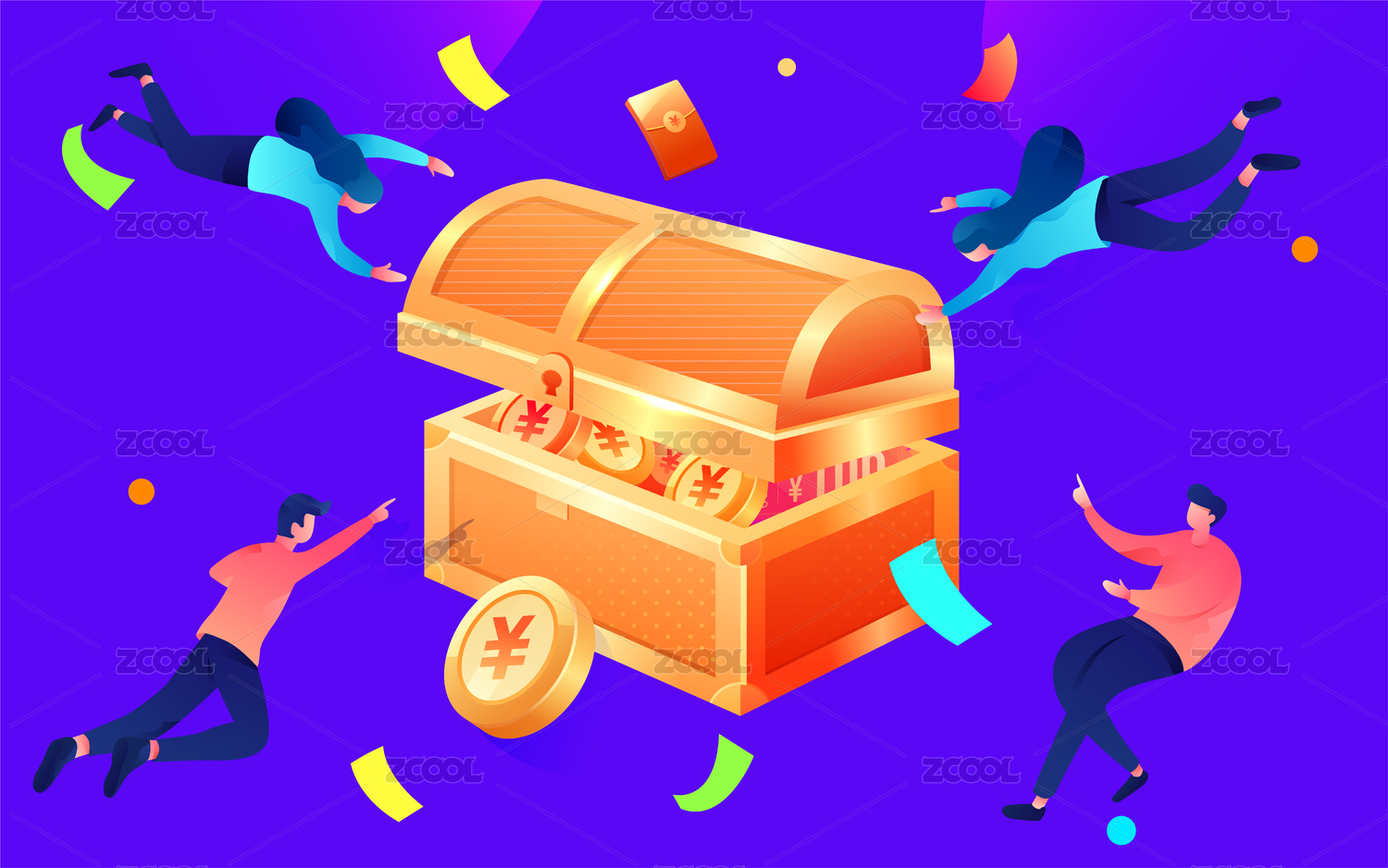 卡通人物爭(zhēng)搶寶箱寶物場(chǎng)景矢量插畫背景素材