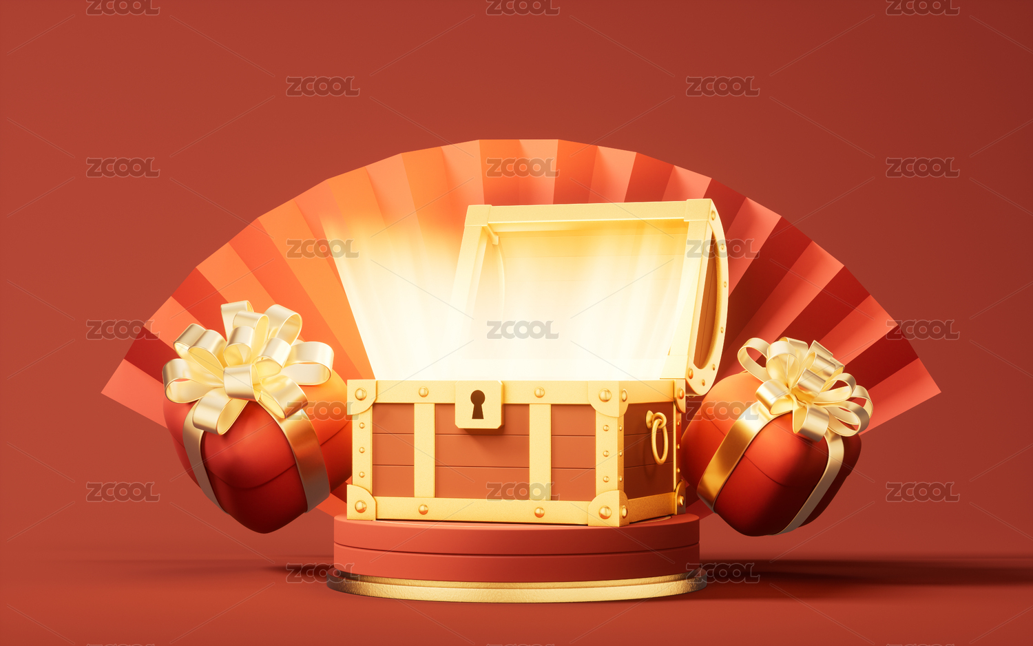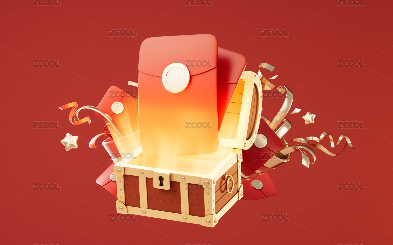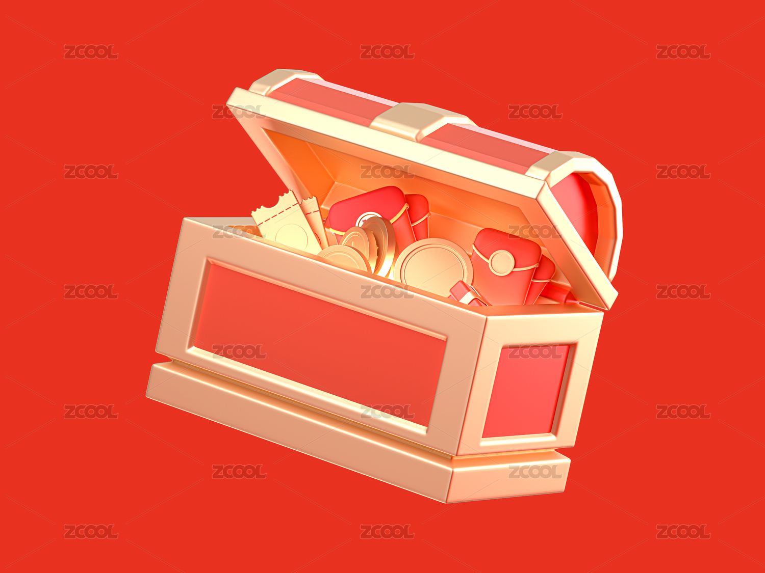 寶箱寶物活動(dòng)金融海報(bào)紅色背景3D圖標(biāo)
