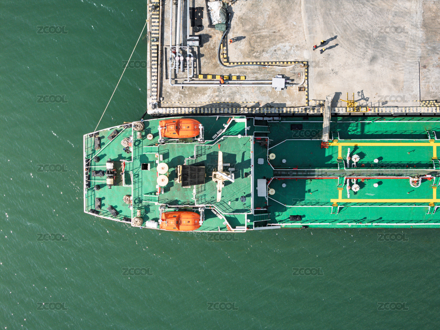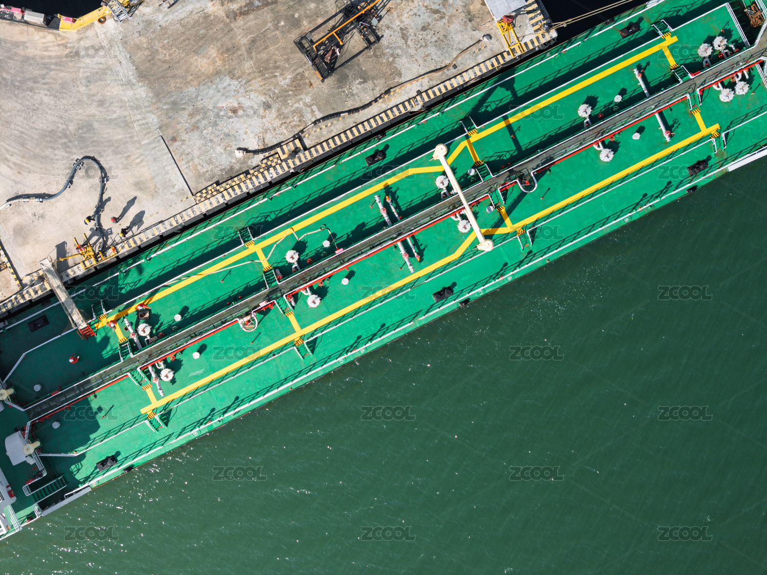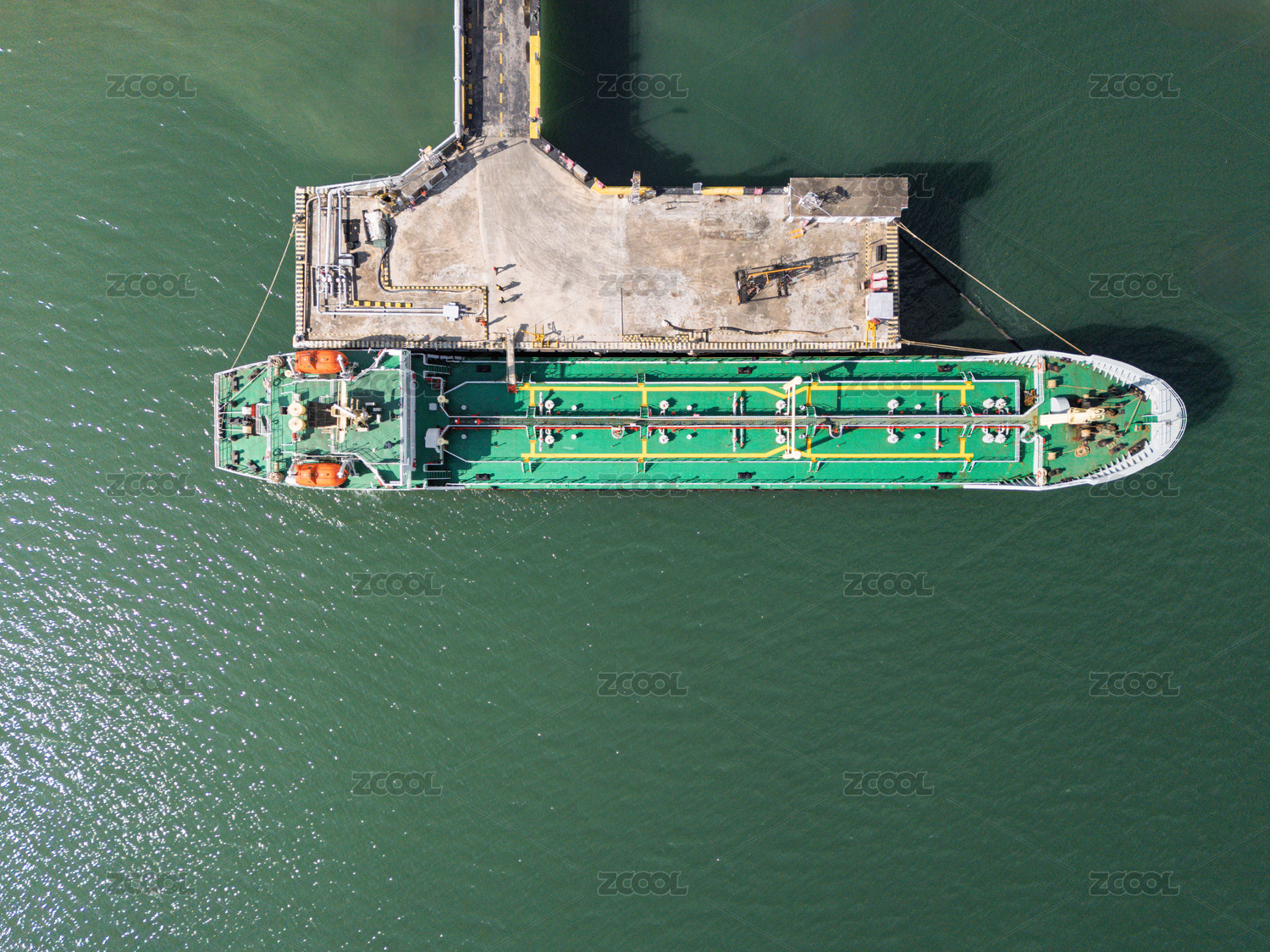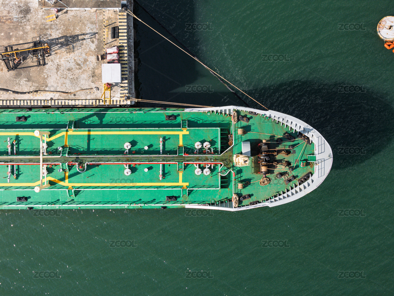 碼頭??康木G色貨船航拍圖