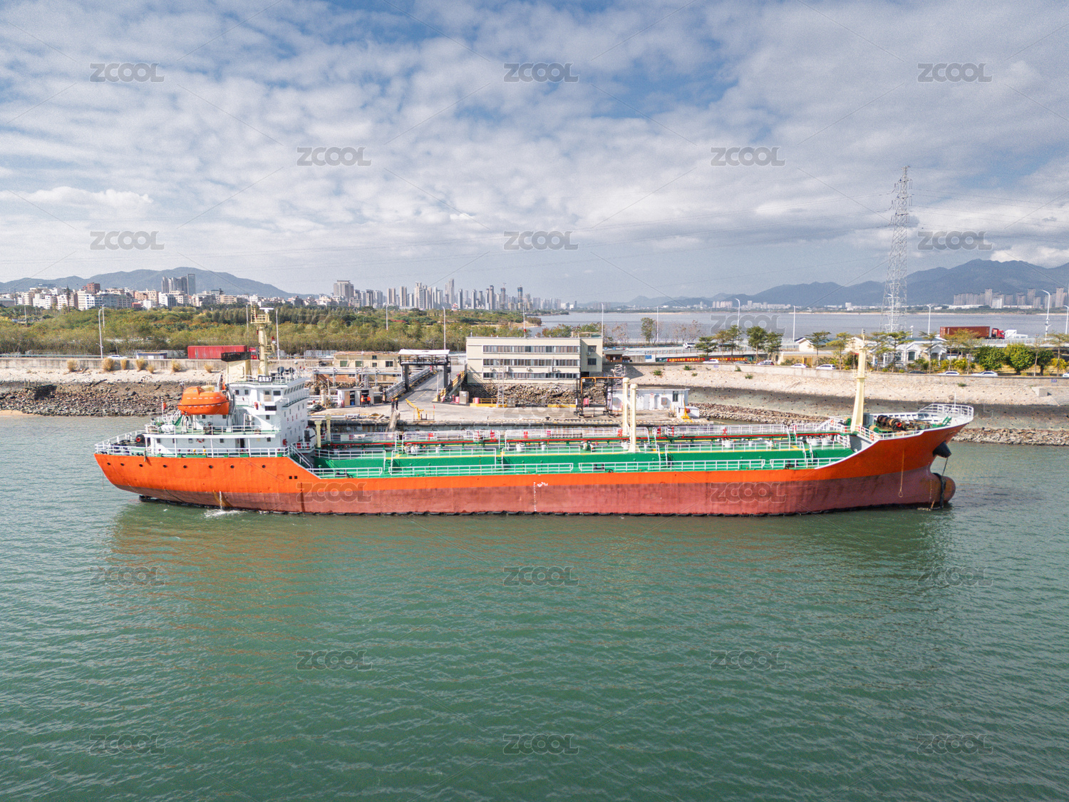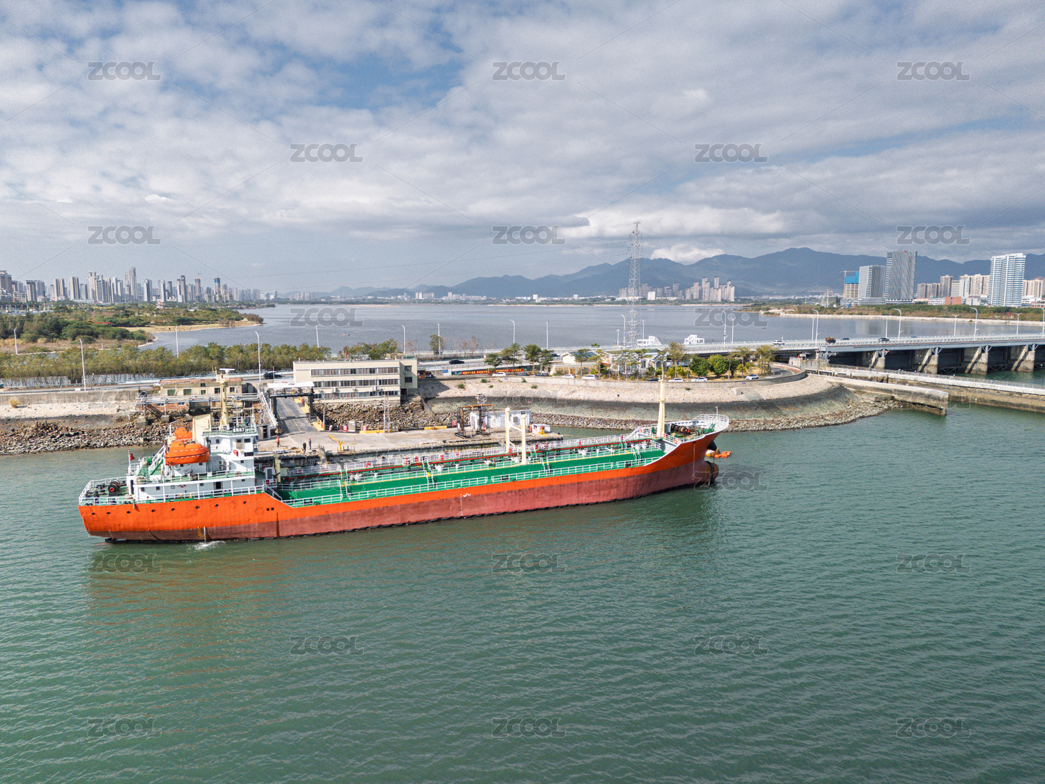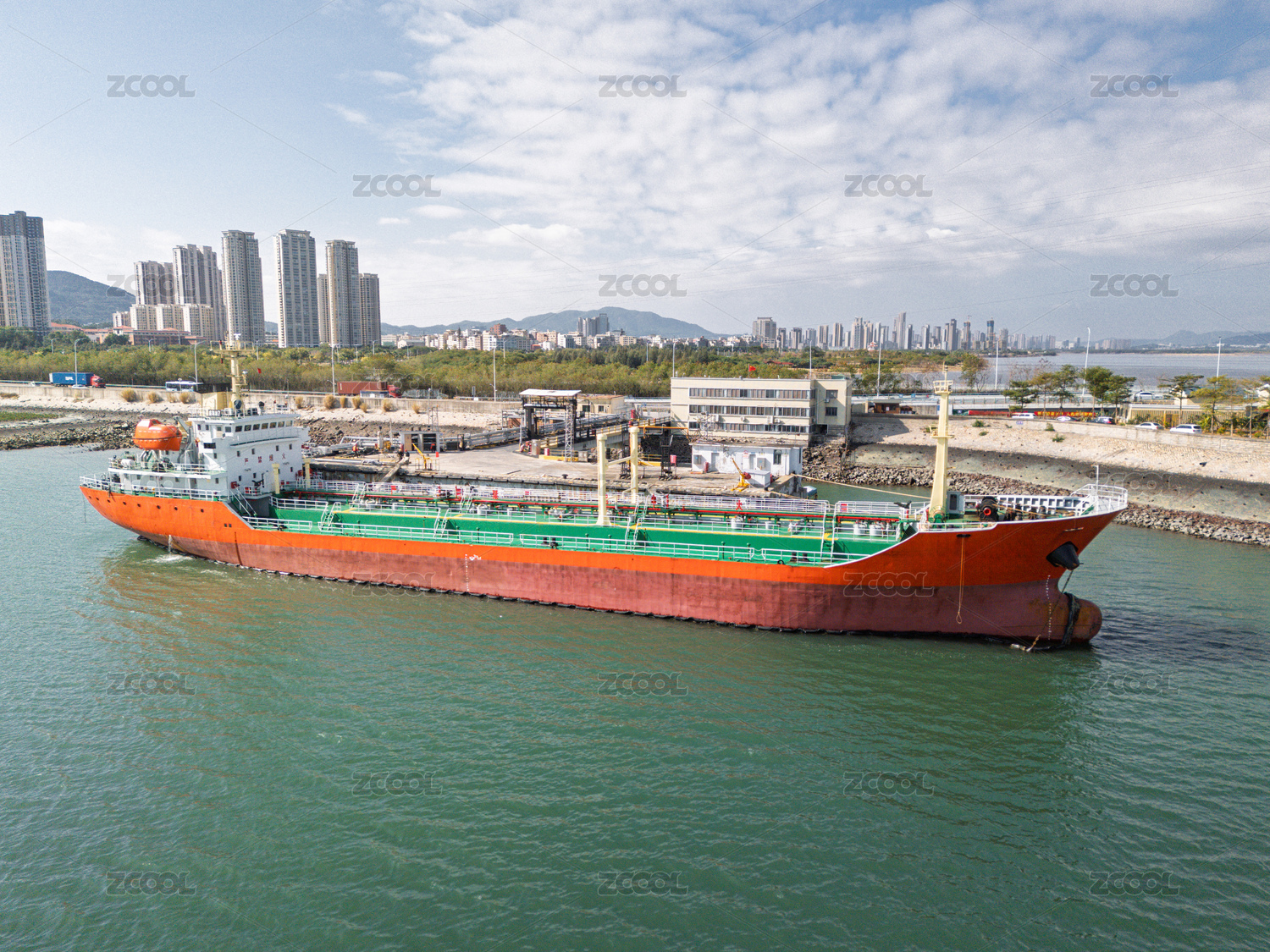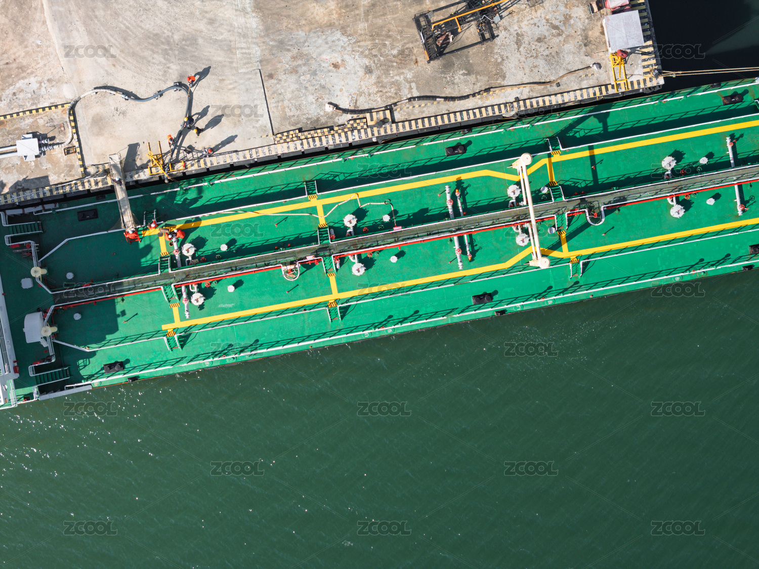 碼頭??康木G色貨船航拍圖