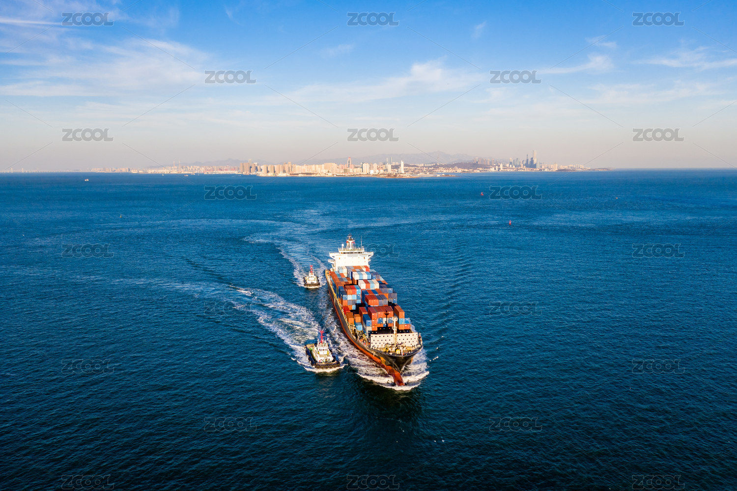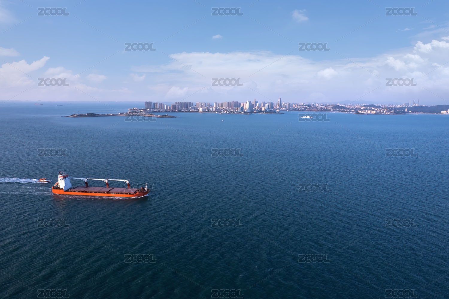 山東青島海域上行駛的貨船