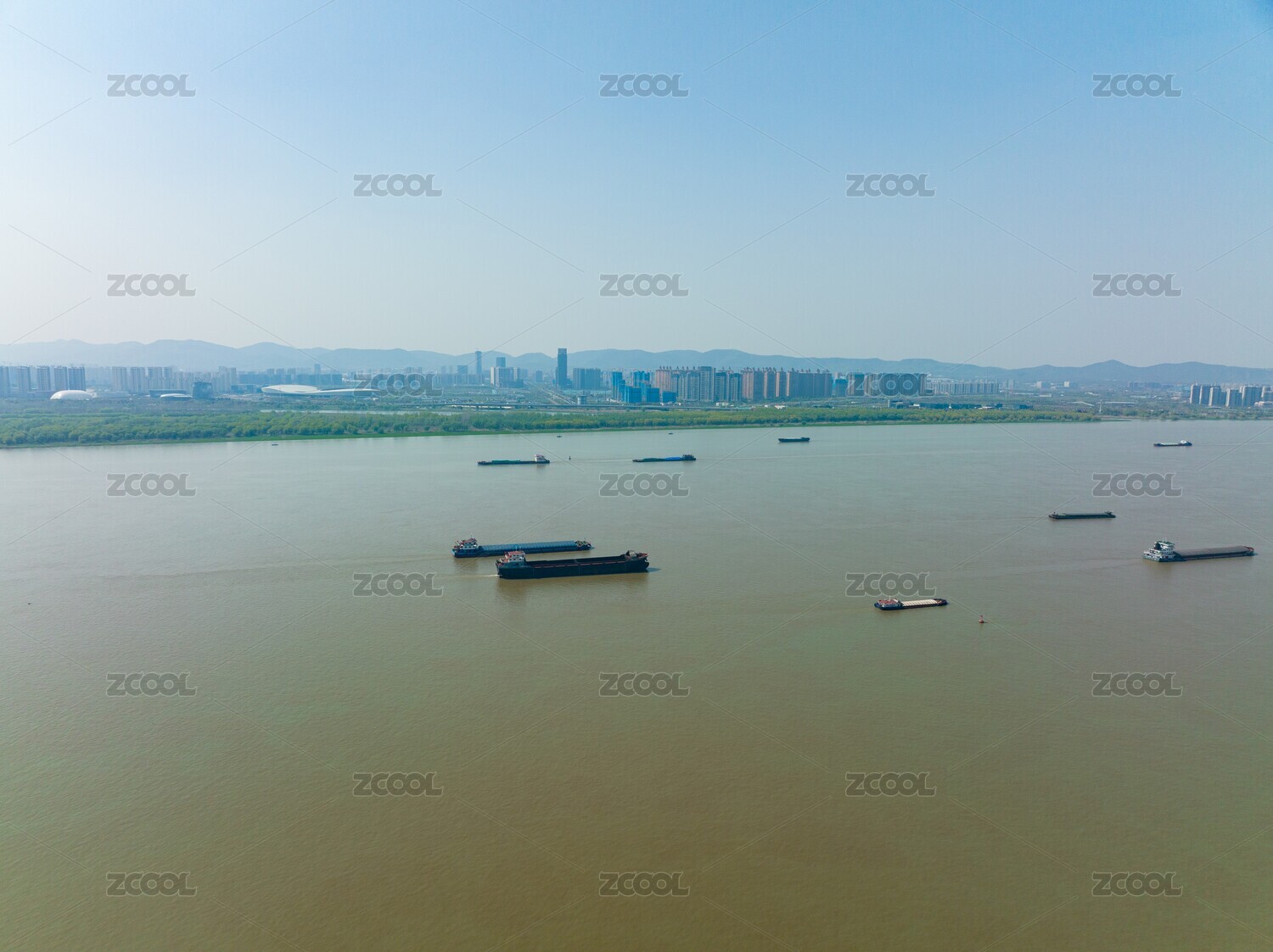 武漢長(zhǎng)江上的貨船