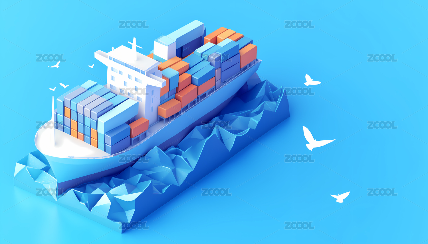 港口的貨船集裝箱海面貨運(yùn)3D插畫