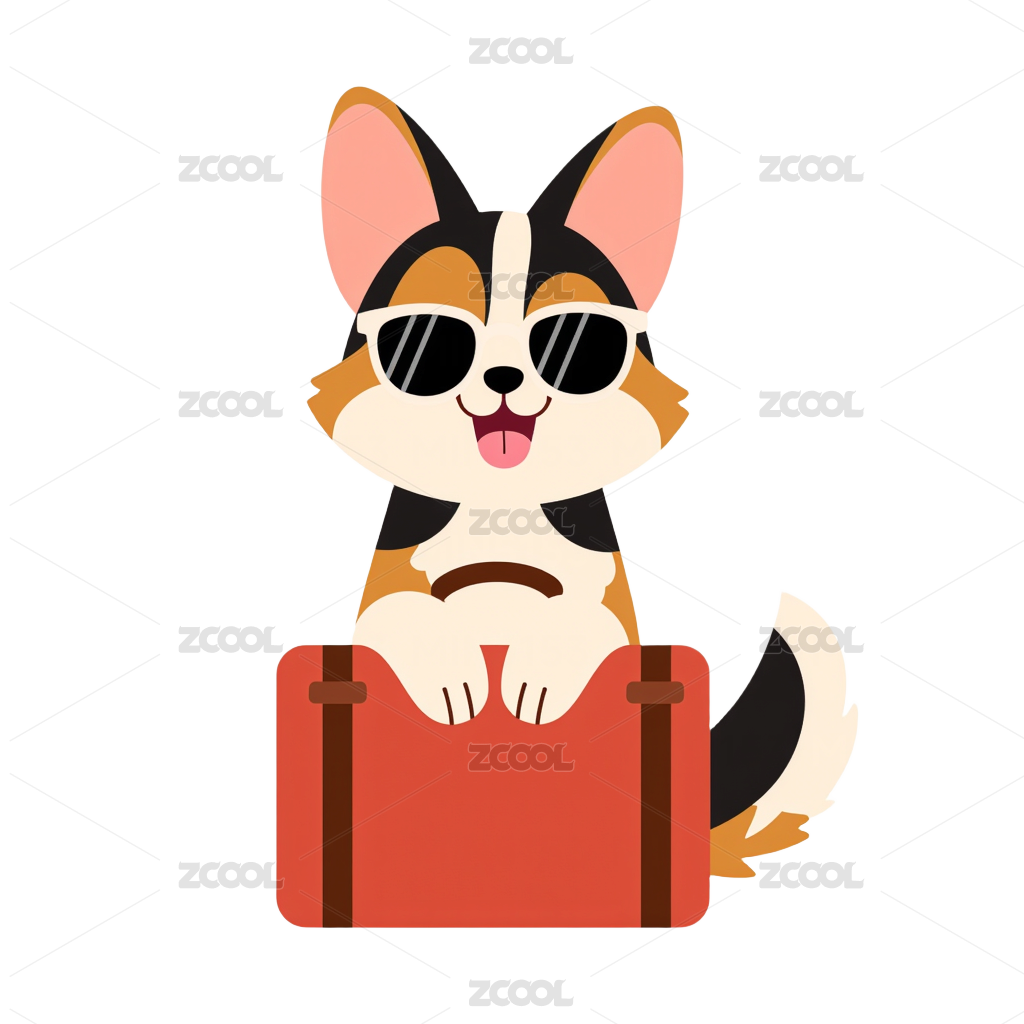 一只狗趴在行李箱上想去旅行扁平插畫風(fēng)格PNG免摳素材