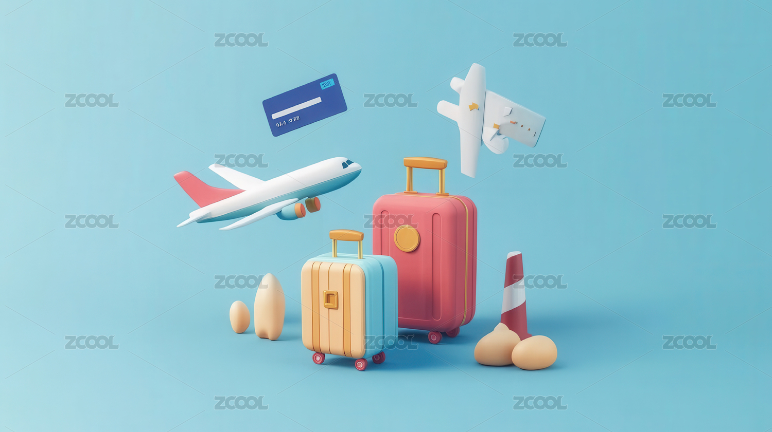 旅行旅游度假主題行李箱手提箱箱子插畫