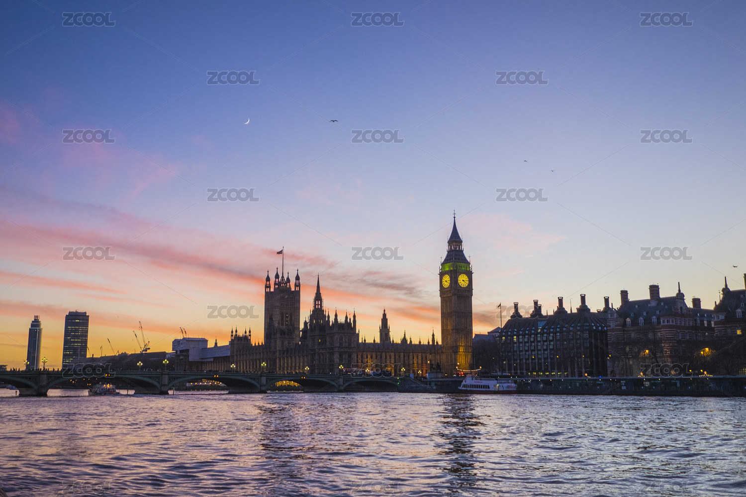 傍晚的倫敦泰晤士河與大本鐘