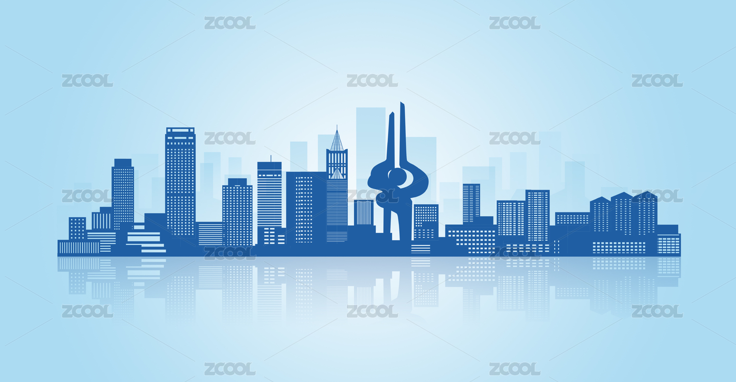 中國(guó)山東省濟(jì)南市地標(biāo)建筑剪影