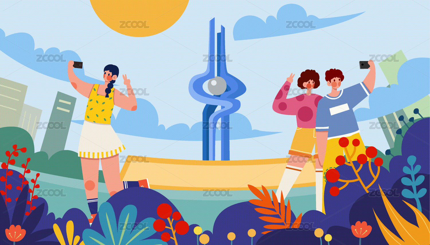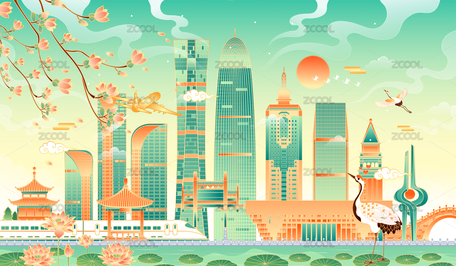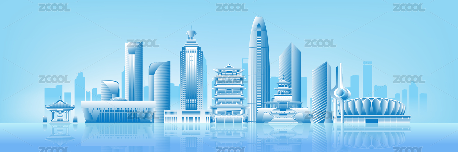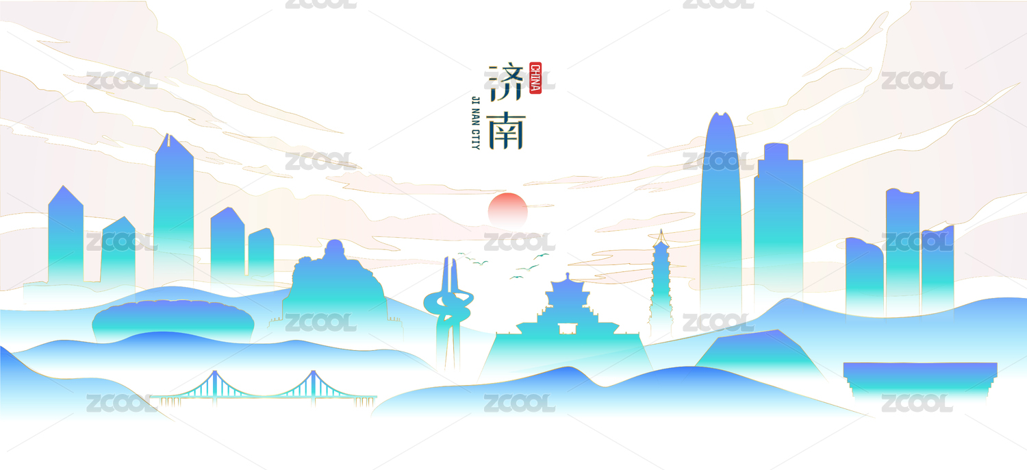 濟(jì)南城市地標(biāo)建筑國(guó)潮風(fēng)矢量手繪